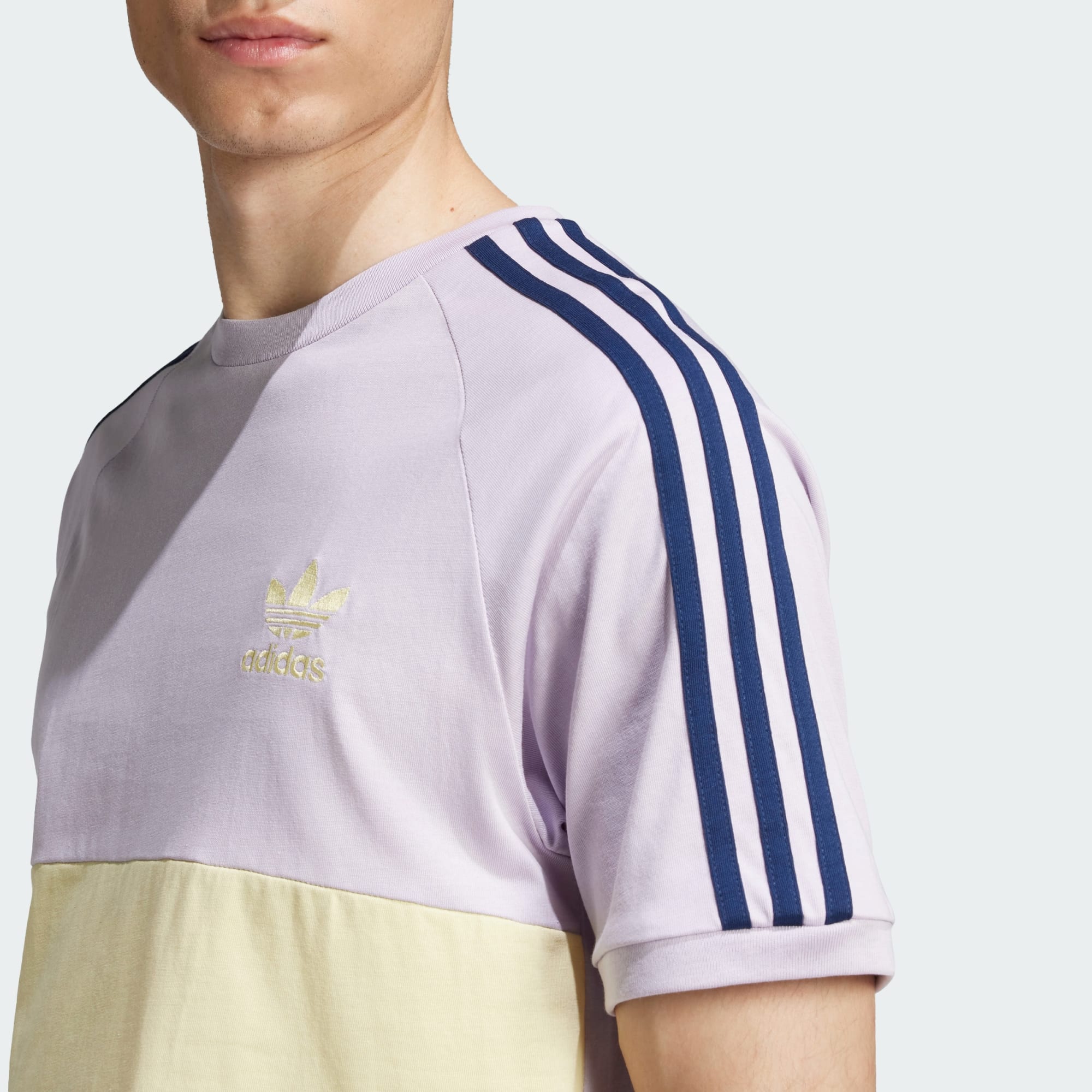 Denne T-shirt er lavet i blød single jersey af bomuld og har en slank pasform, så du kan repræsentere 3-Stripes i komfort. Et kontrastfarvet panel gør sig bemærket på forsiden og matcher Trefoil-logoet på brystet. 3-Stripes ned ad skuldrene giver en karakteristisk stil.
