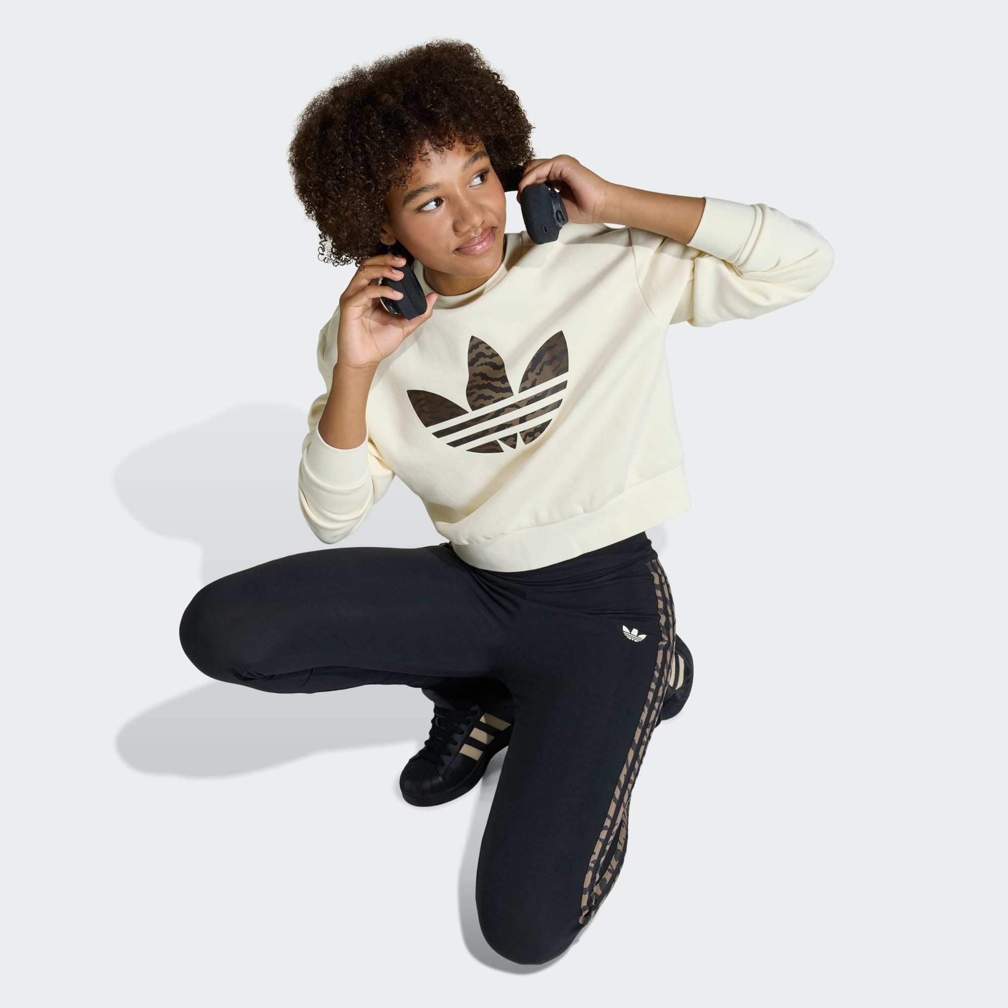 Komfort og stil forenes i disse 3-Stripes-tights. Disse alsidige tights er inspireret af den dristige ånd hos adidas Originals og er skabt til hverdagens eventyr. De er fremstillet af blødt single jersey-stof med et elastisk taljebånd, der giver en tætsiddende og fleksibel pasform, der bevæger sig ubesværet med dit barn. De ikoniske 3-Stripes ned langs siderne har et heldækkende tigerprint, der tilføjer et legende og iøjnefaldende præg, mens det broderede Trefoil-logo fuldender looket med et tidløst adidas-præg. Disse tights til juniorer er mere end bare stilfulde – de hylder legende energi og selvtillid. Uanset om de kombineres med en afslappet t-shirt eller en sporty top, giver de dit outfit et sjovt og selvsikkert touch.