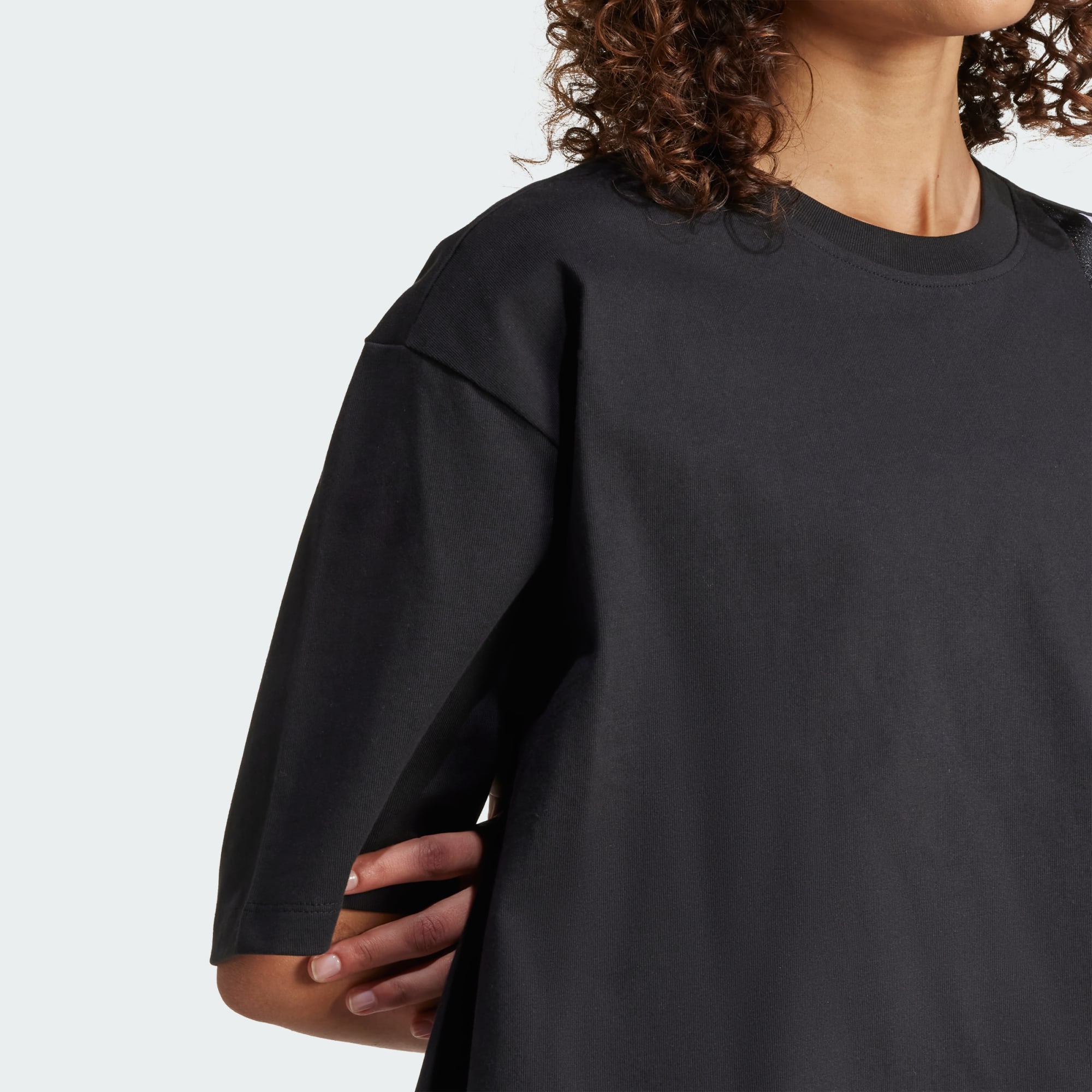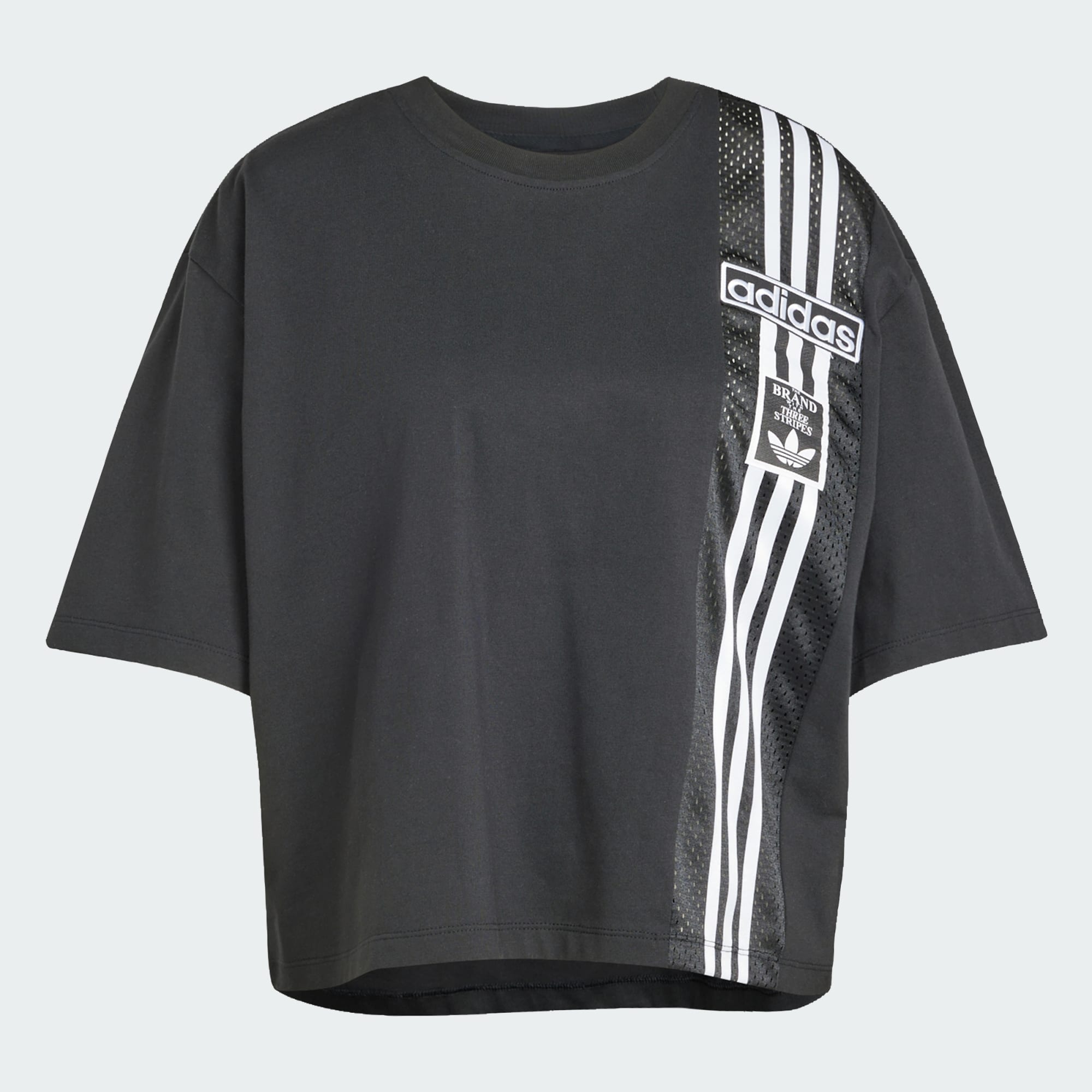 En kort T-shirt med markant adidas-grafik og en løs pasform.