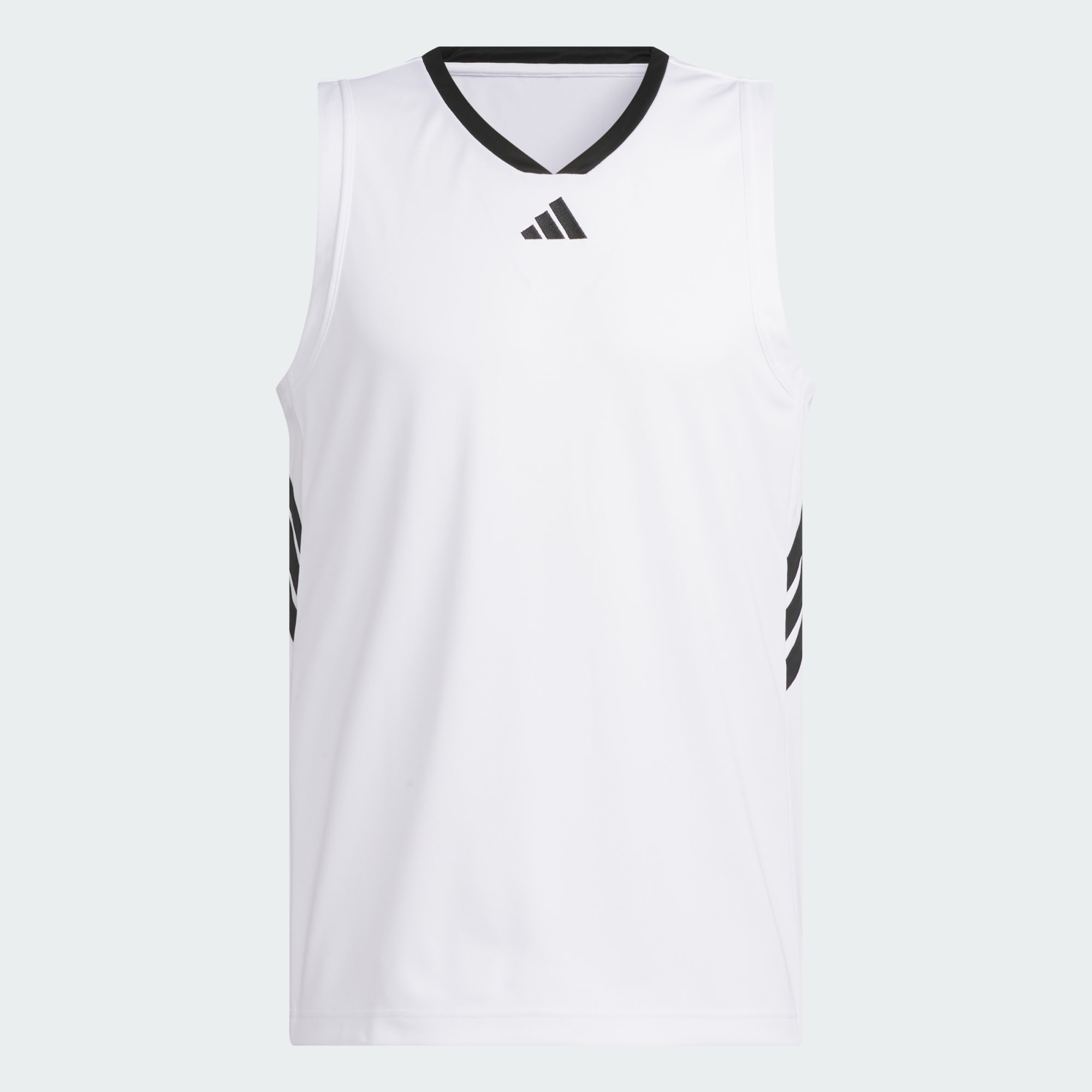 Klassisk komfort til banen. Denne basketball-tanktop fra adidas har brede ærmegab og V-hals, der giver fuld bevægelsesfrihed til hvert jump-shot. Et 3 Bar-logo på brystet og 3-Stripes på siden fuldender det ikoniske look. Dette produkt er lavet med 100 % genanvendte materialer. Ved at genbruge materialer, der allerede er blevet skabt, hjælper vi med at reducere spild og vores afhængighed af begrænsede ressourcer, og reducerer vores produkters aftryk.