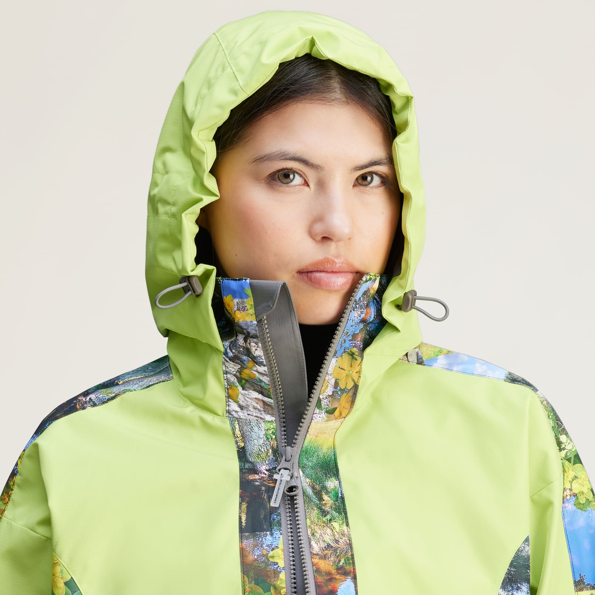 Det handler ikke kun om de rigtige vejrforhold, for det at have det rigtige tøj er essentielt, for at du kan nyde din tid udenfor, uanset om du er dybt nede i naturen eller løber rundt i byen. Heldigvis tager denne adidas by Stella McCartney-jakke sig af det hele med sit innovative design. Når det er ovrskyet og begynder at regne, hjælper RAIN.RDY-teknologien i to lag og de justerbare detaljer med at holde vejret ude. Når himlen åbner sig op, og solen rammer og varmer dig, kan du bare pakke jakken sammen og forvandle den til en funktionel rygsæk. Den kan bæres som en jakke eller rygsæk og skiller sig ud med en markant print og er en inspireret collage, der beundrer kontrasten mellem vand og jord, med en cut-and-paste-tilgang, der sender en hilsen til outdoor-camouflage. Dette produkt er lavet med 100 % genanvendte materialer. Ved at genbruge materialer, der allerede er blevet skabt, hjælper vi med at reducere spild og vores afhængighed af begrænsede ressourcer, og reducerer vores produkters aftryk.