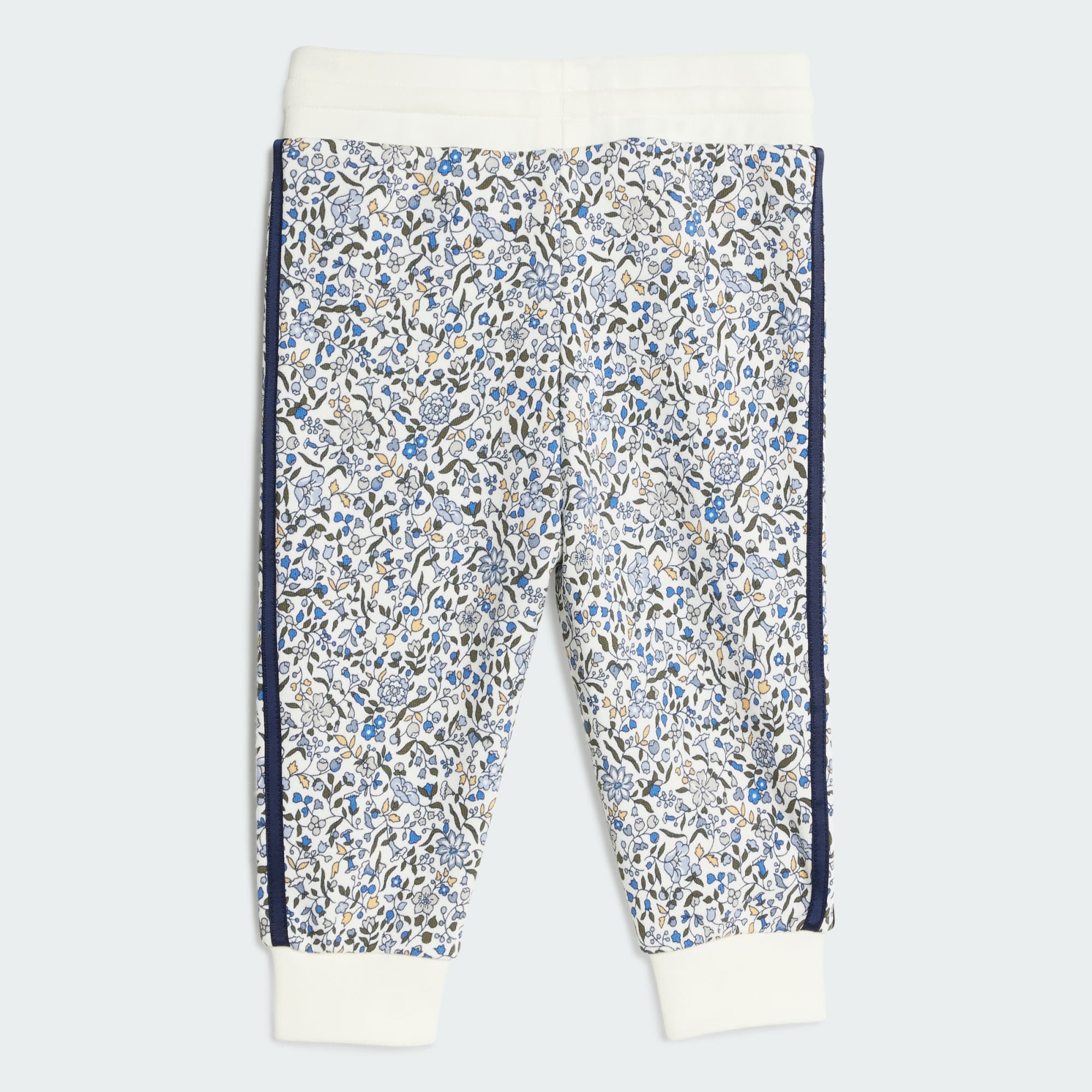 Dette adidas-sæt til småbørn er skabt i samarbejde med Liberty London og har et farverigt print. Mønstret består af blomster i indisk chintz-stil. Sættet er fremstillet af blød frotté og holder barnet behageligt under leg og afslapning.