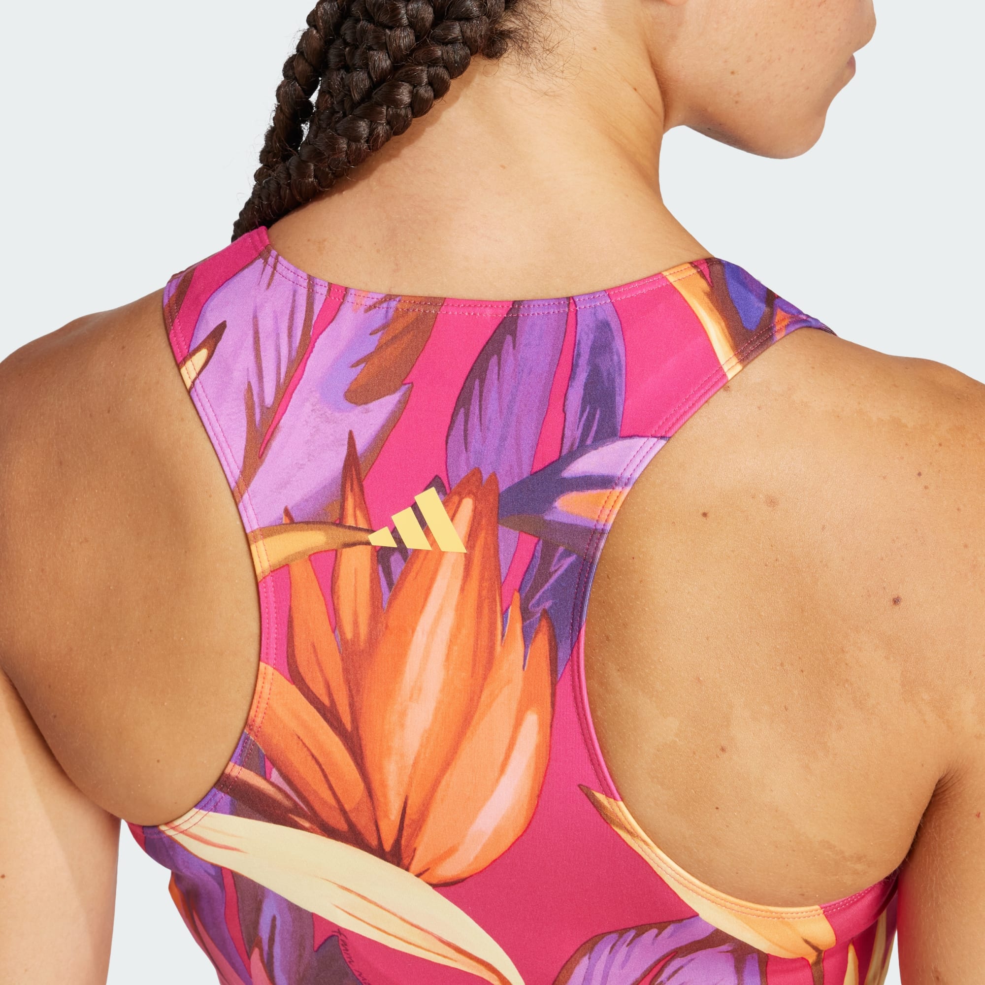 Denne tanktop fra adidas kombinerer FARM Rio's karakteristiske tropiske vibes med dyreprint og ikatprint for at skabe et eksotisk look inspireret af ørkenens skønhed. Den slanke pasform og bryderryggen giver dig fuld bevægelsesfrihed til konditionstræning eller styrketræning. CLIMACOOL leder sveden væk for at holde dig afkølet, tør og uforstyrret.