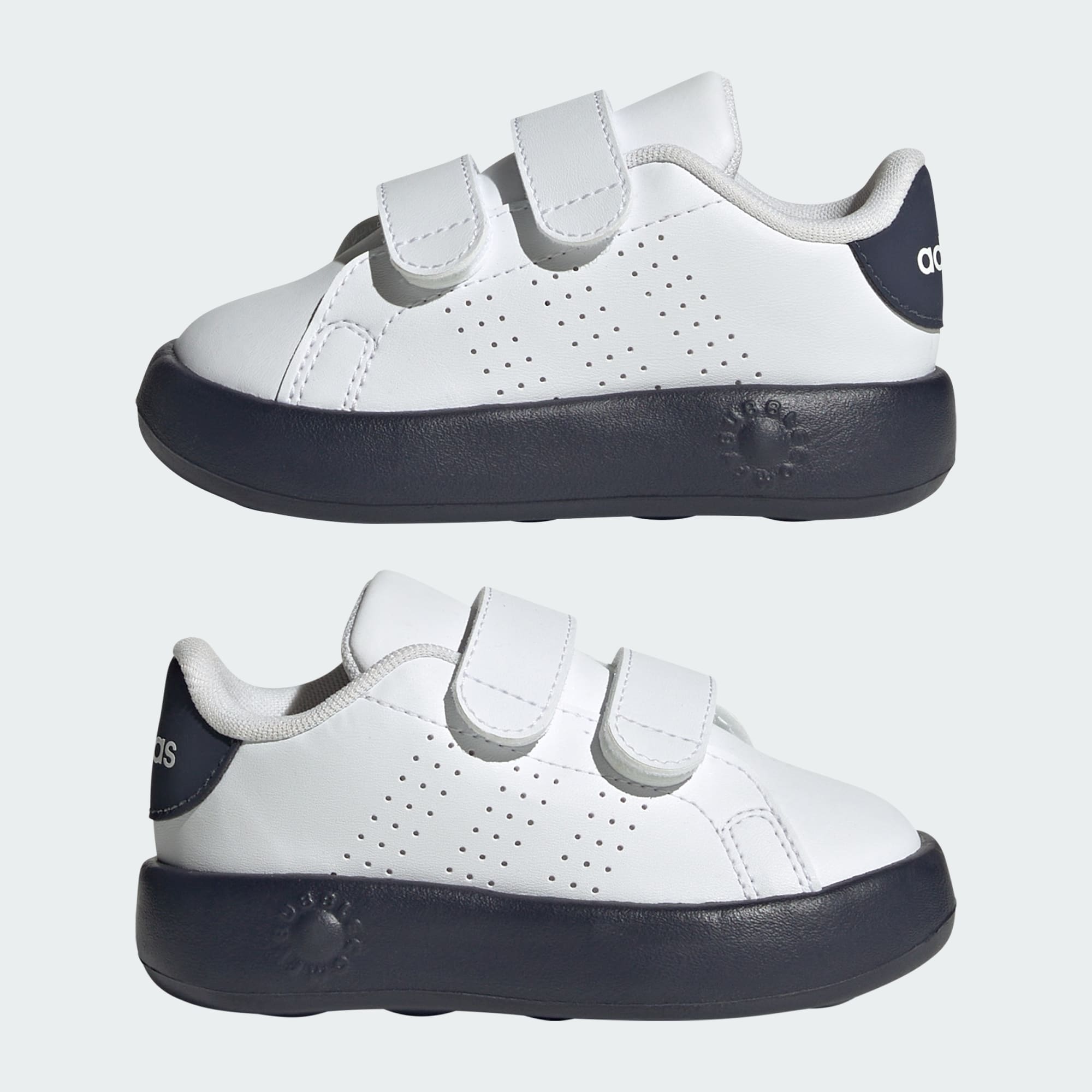 Disse Advantage-sko til småbørn fra adidas sørger for, at de små fødder føler sig godt tilpas hele dagen, uanset om de leger i parken eller besøger familien. Remme med burrebånd gør det let for både de små og forældrene at få skoene af og på. En kombineret EVA-mellemsål og ydersål i ét stykke støddæmper hvert skridt, mens den genanvendte syntetiske overdel giver holdbarhed og stil.