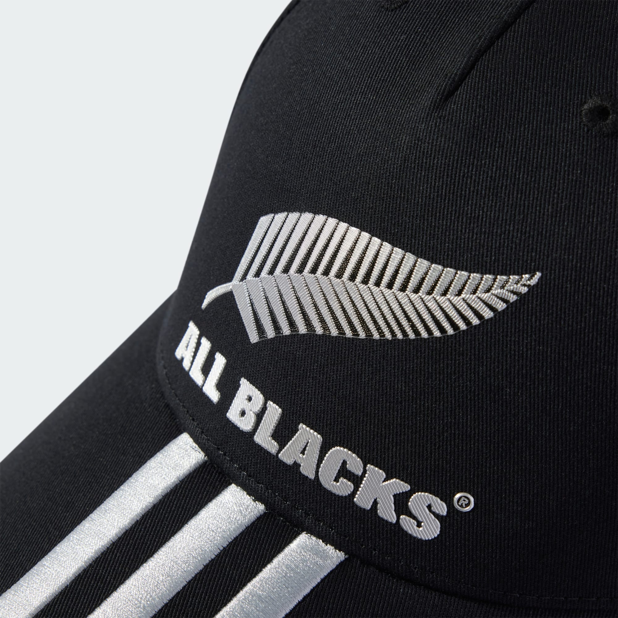 En blød All Blacks-kasket, der er klar til brug med en let buet skygge.