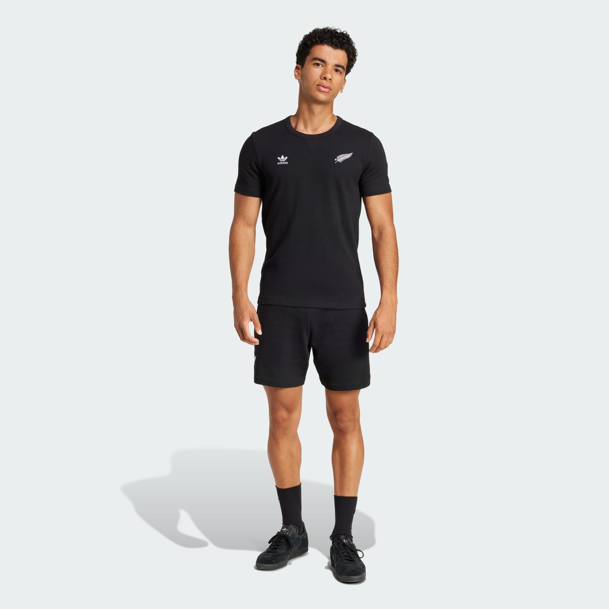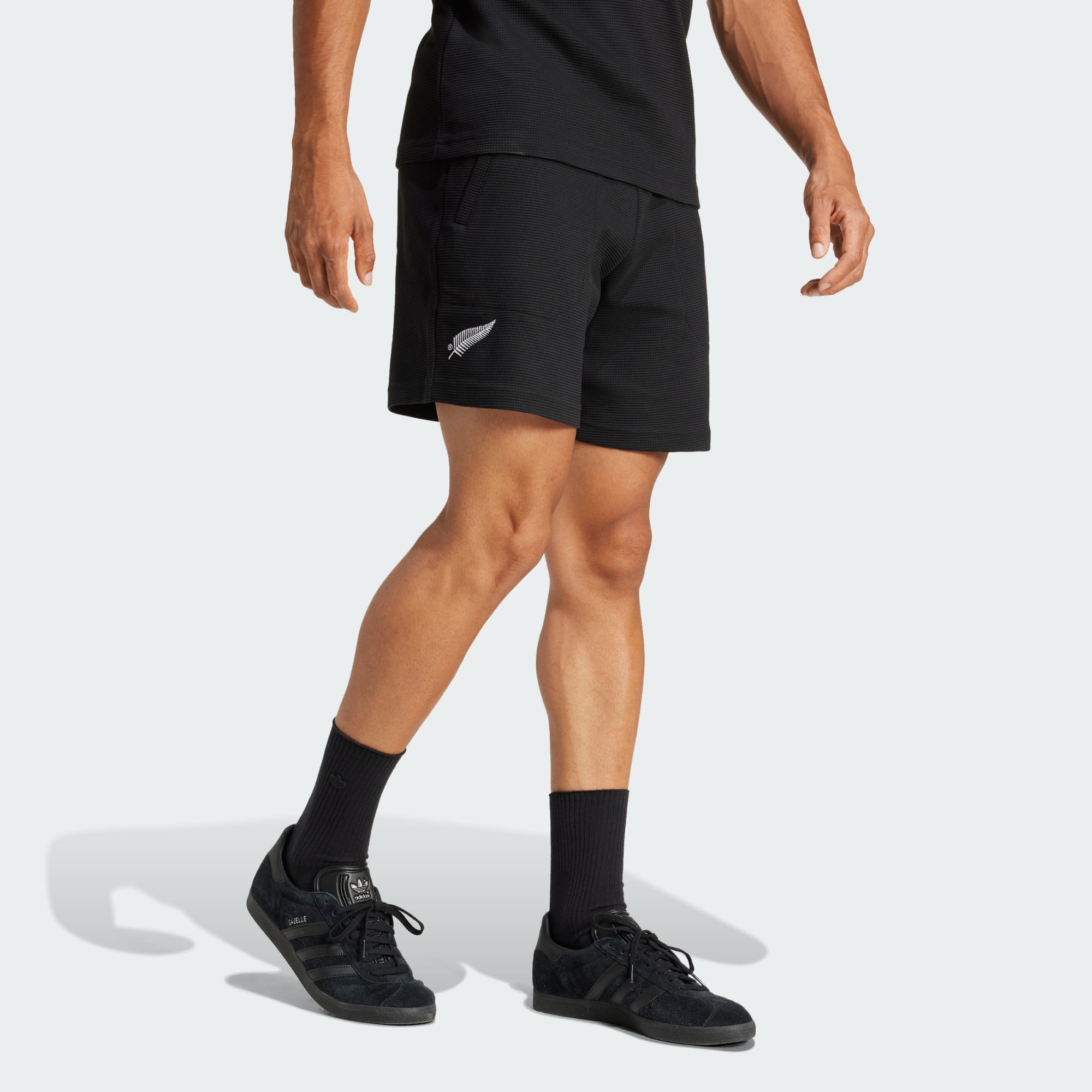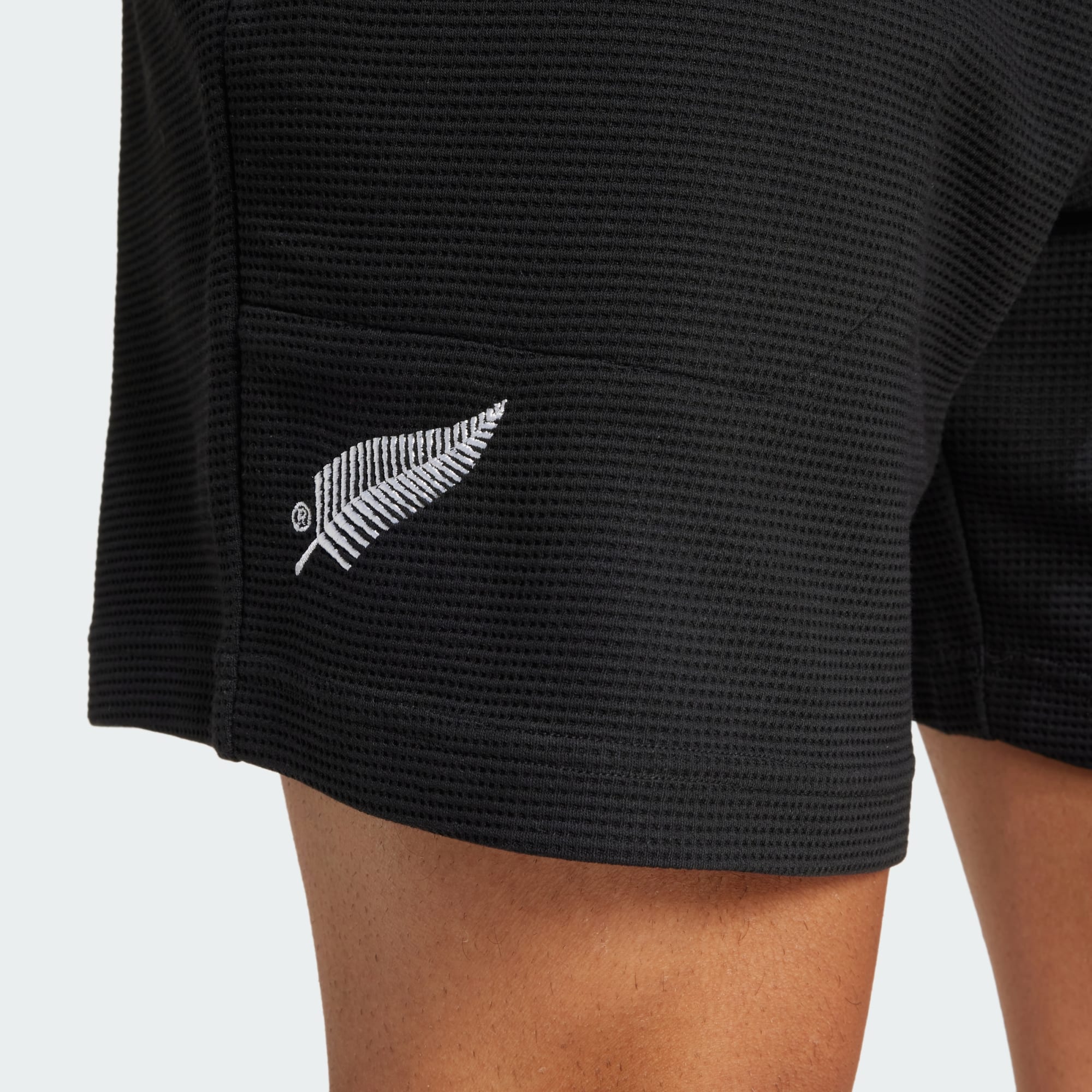 Disse shorts er inspireret af All Blacks-stil og adidas-DNA, og er skabt til fans, der vil vise deres rugbyloyalitet. Det dobbeltstrikkede stof føles blødt mod huden og har en diskret vaffeltekstur. Et Trefoil-logo sidder modsat sølvbregnen og giver en klassisk vibe.