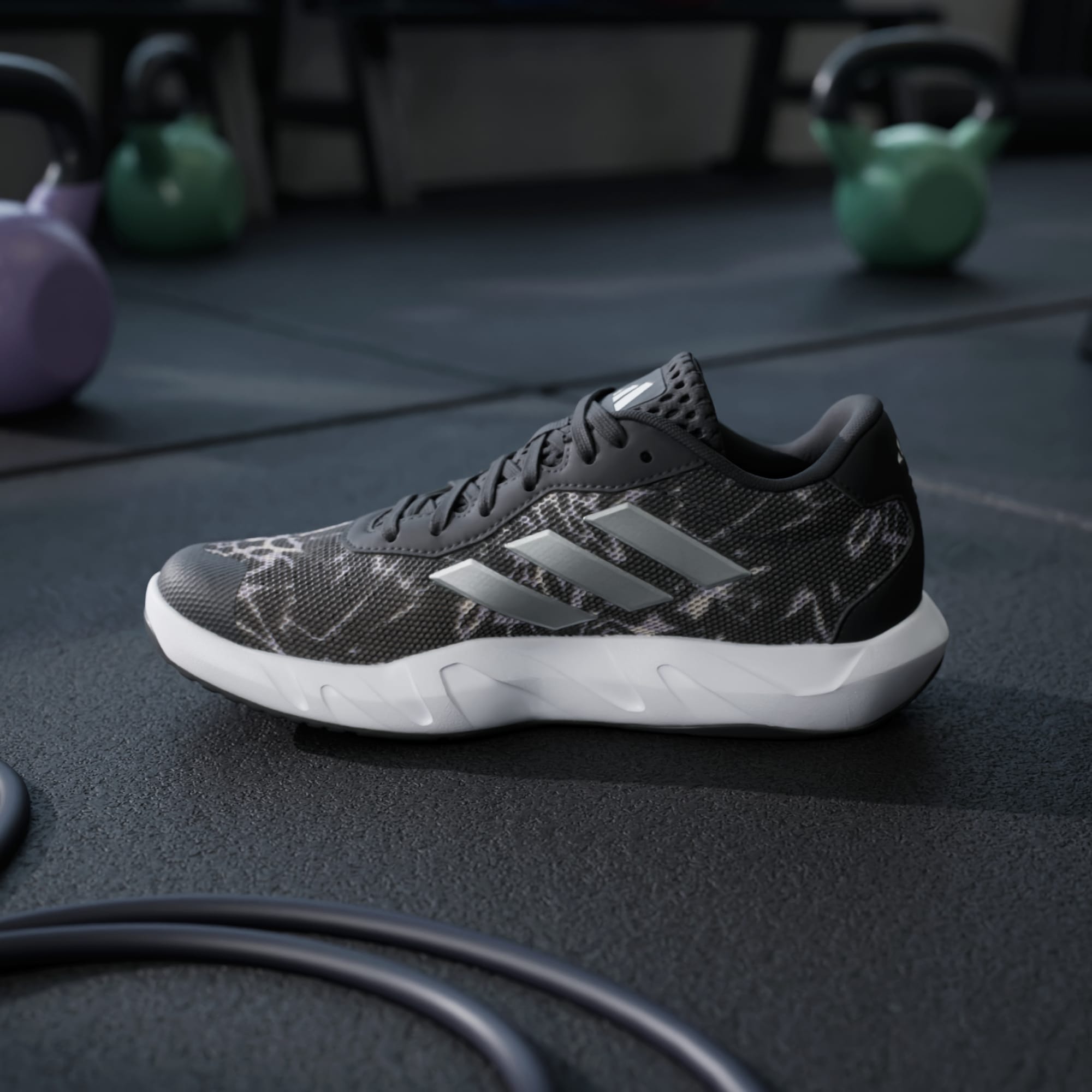 Uanset om du stræber efter at træne som en professionel eller bare forbedre din træning, hjælper disse træningssko fra adidas dig med at frigøre dit atletiske potentiale. Disse lette, men støttende sko har en sømløs mesh-overdel og zoneinddelte TPU-påsætninger, der omfavner foden, så du står stabilt, når du bevæger dig i alle retninger. En skulptureret mellemsål giver komfort og fleksibilitet, mens den multidirektionelle ydersål griber fat i gulvet for at fremme din præstation.