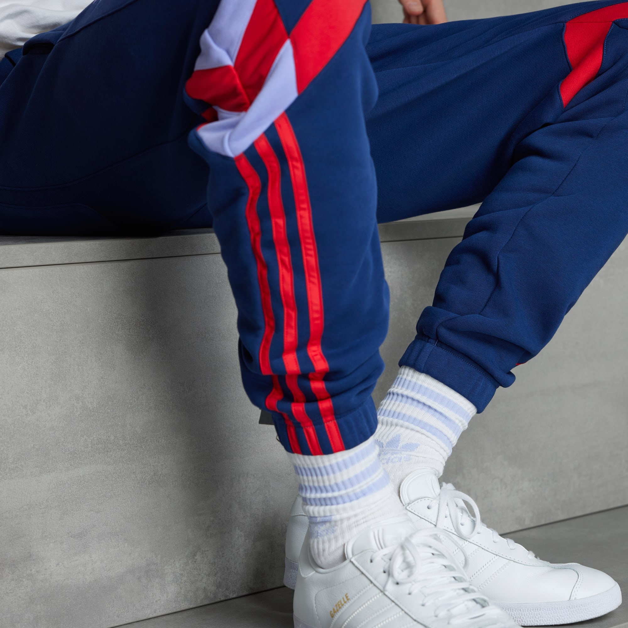 Stå bag dit hold i komfort. Deres fleecekonstruktion og elastiske opslag sikrer, at disse tætsiddende Arsenal-bukser føles behagelige, hver gang du tager dem på. Men det er de oversize 3-Stripes og det ikoniske Trefoil-logo, der er hentet direkte fra adidas’ fodboldarkiver, der vil sikre, at du bliver ved med at række ud efter dem.