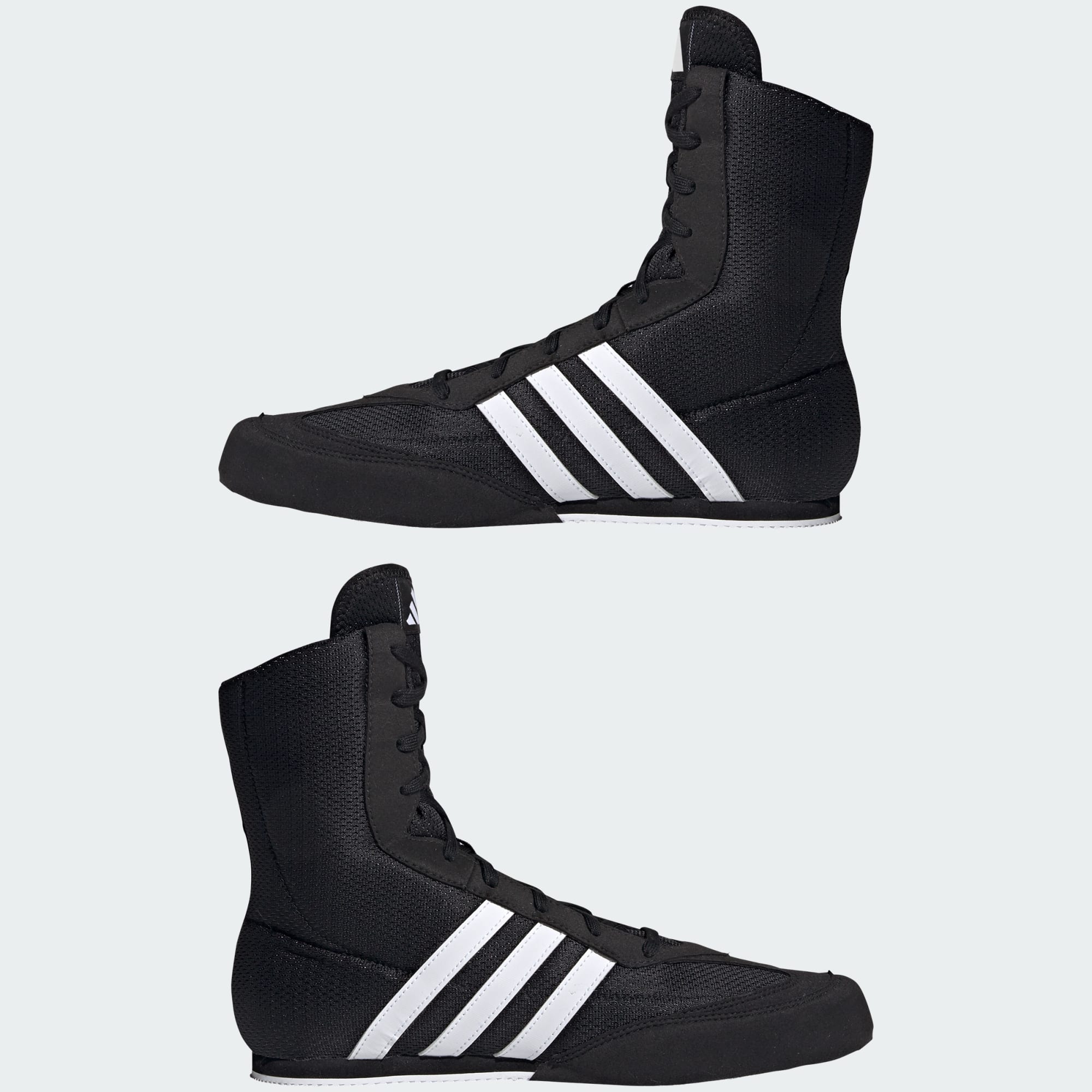 De kan ikke ramme, hvad de ikke kan se. Disse Box Hog-boksesko fra adidas holder dig oppe på tæerne i ringen takket være den lette overdel i mesh, den supertynde mellemsål i EVA og den skridsikre ydersål i gummi. Det mellemhøje skaft og de indvendige forstærkninger stabiliserer fødderne, når du springer fra side til side.