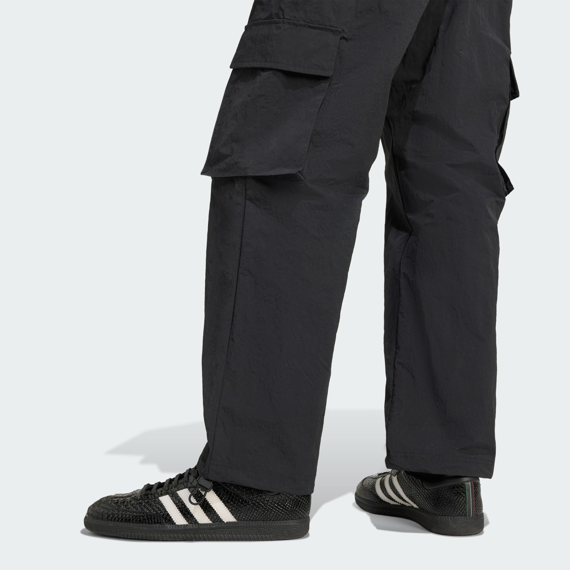 Disse adidas cargobukser er inspireret af de dristige stilarter inden for klubmode. Deres løse silhuet og polyester lærredsvævning skaber en afslappet stemning, perfekt uanset om du er i byen eller bare slapper af derhjemme. En svævende Trefoil og 3-Stripes på det ene ben giver de ikoniske detaljer.