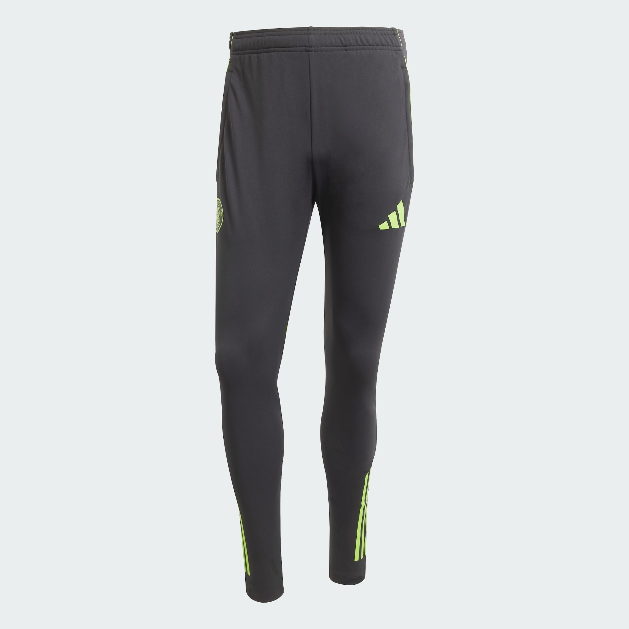 Vis din stolthed over Celtic FC, mens du skærper dine fodboldfærdigheder i disse træningsbukser fra adidas. Deres strømlinede design har også strækbart materiale, så du nemt kan bevæge dig under øvelser, og de der lynlåslommer er praktiske til at opbevare uundværlige træningsgenstande. Et varmetrykt klubmærke på benet lader dig vise dine farver på og uden for banen.