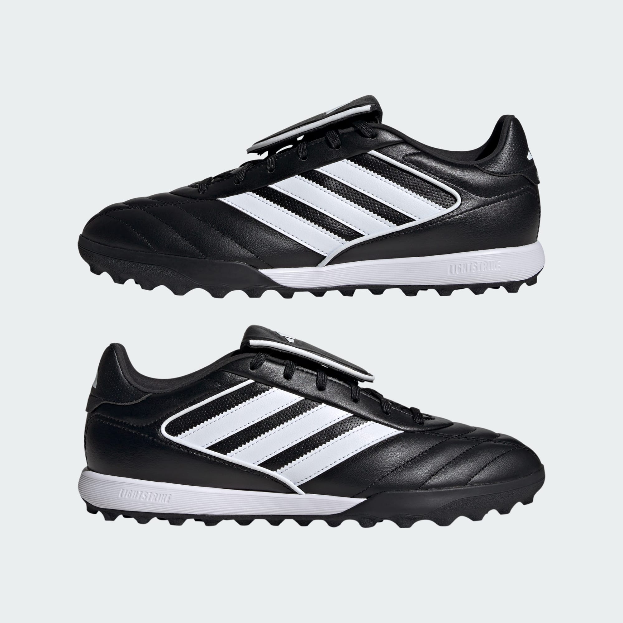 Klassisk Copa-stil nytænkt til den moderne spiller. Disse fodboldstøvler fra adidas har ikoniske Mundial-inspirerede detaljer, herunder den berømte foldbare pløs, så du kan føle dig godt tilpas med en overdel i læder. En spændstig Lightstrike-mellemsål hviler på en rillet ydersål i gummi, der er skabt til baner i kunstgræs, så du altid er klar til kamp.