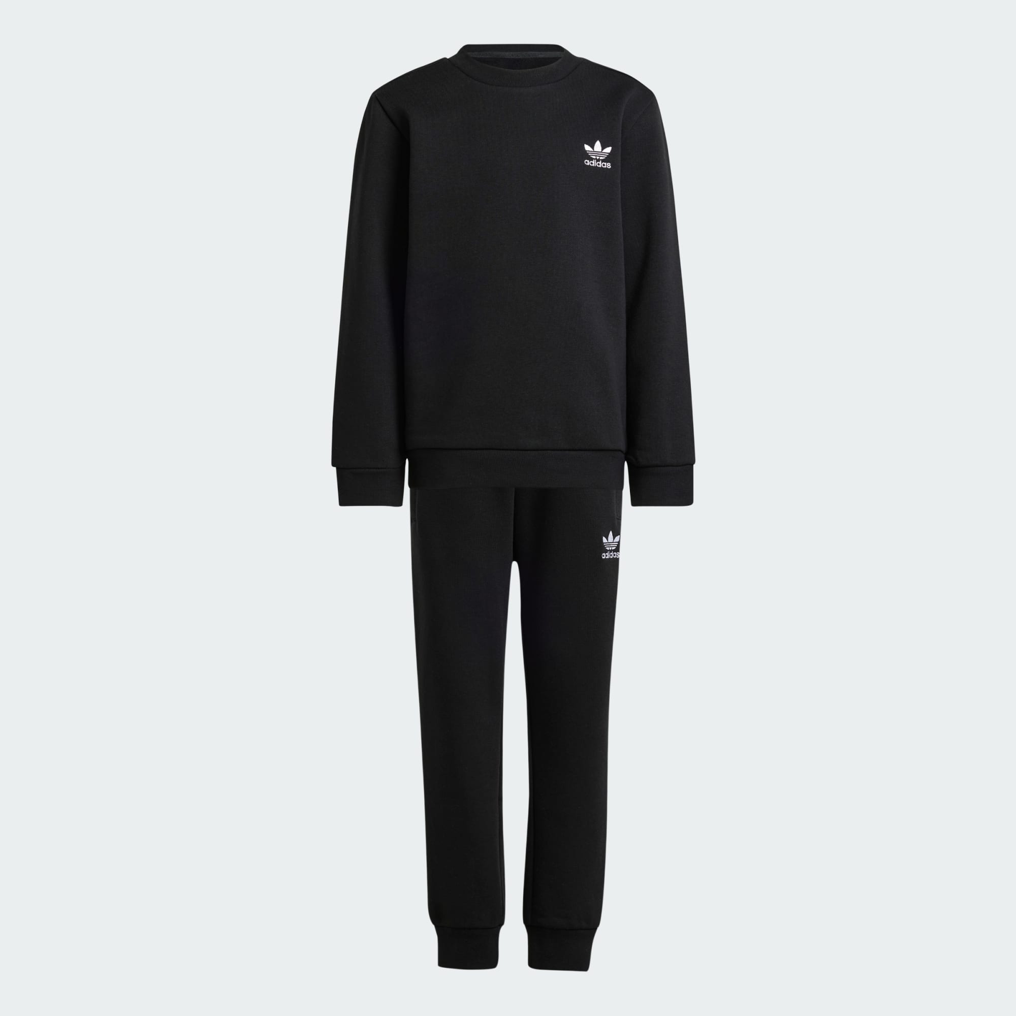 Ubesværet komfort til unge adidas-fans. Dette sæt med rund hals til børn svøber dem ind i blød fleece fra top til tå og har ribstrik på krave, kant og opslag for at give ekstra varme. Kontrastfarvede Trefoil-logoer på sweatshirten og bukserne sender en hilsen til adidas-arven, og forbinder en ny generation med en arv af sport og stil. Bomulden i dette produkt er hentet fra Better Cotton. Better Cotton fremstilles via en depotmodel, der kaldes massebalance. Det betyder, at Better Cotton ikke fysisk kan spores til slutprodukter. Se mere her: https://bettercotton.org/who-we-are/our-logo/