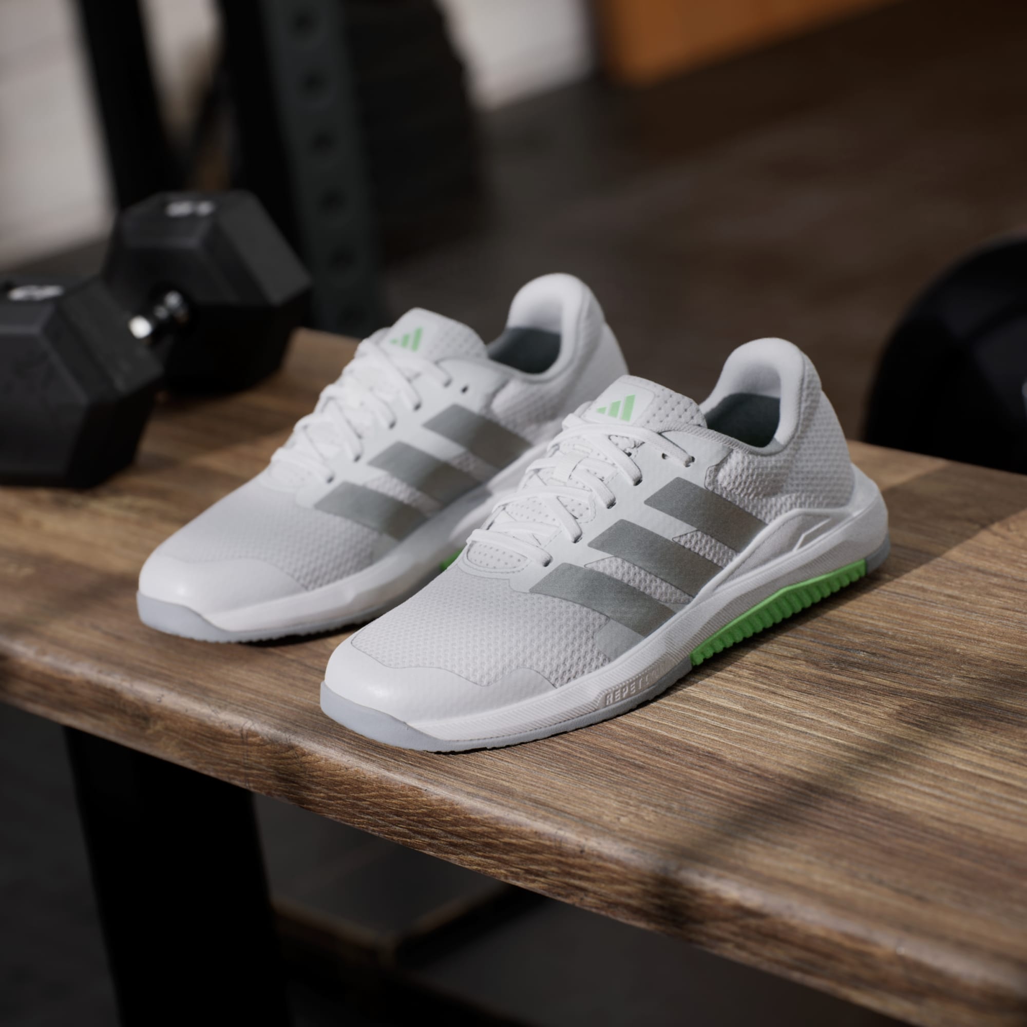 Du kan rykke dine grænser i vægtrummet. Disse træningssko fra adidas er skabt til styrketræning. En bred forfod, lav til jorden konstruktion og multi-retningsbestemt rillet ydersål holder dig stabil og i kontrol under eksplosive bevægelser og tunge løft. Den åndbare mesh-overdel er forstærket med 3D-påsætninger for ekstra støtte.
