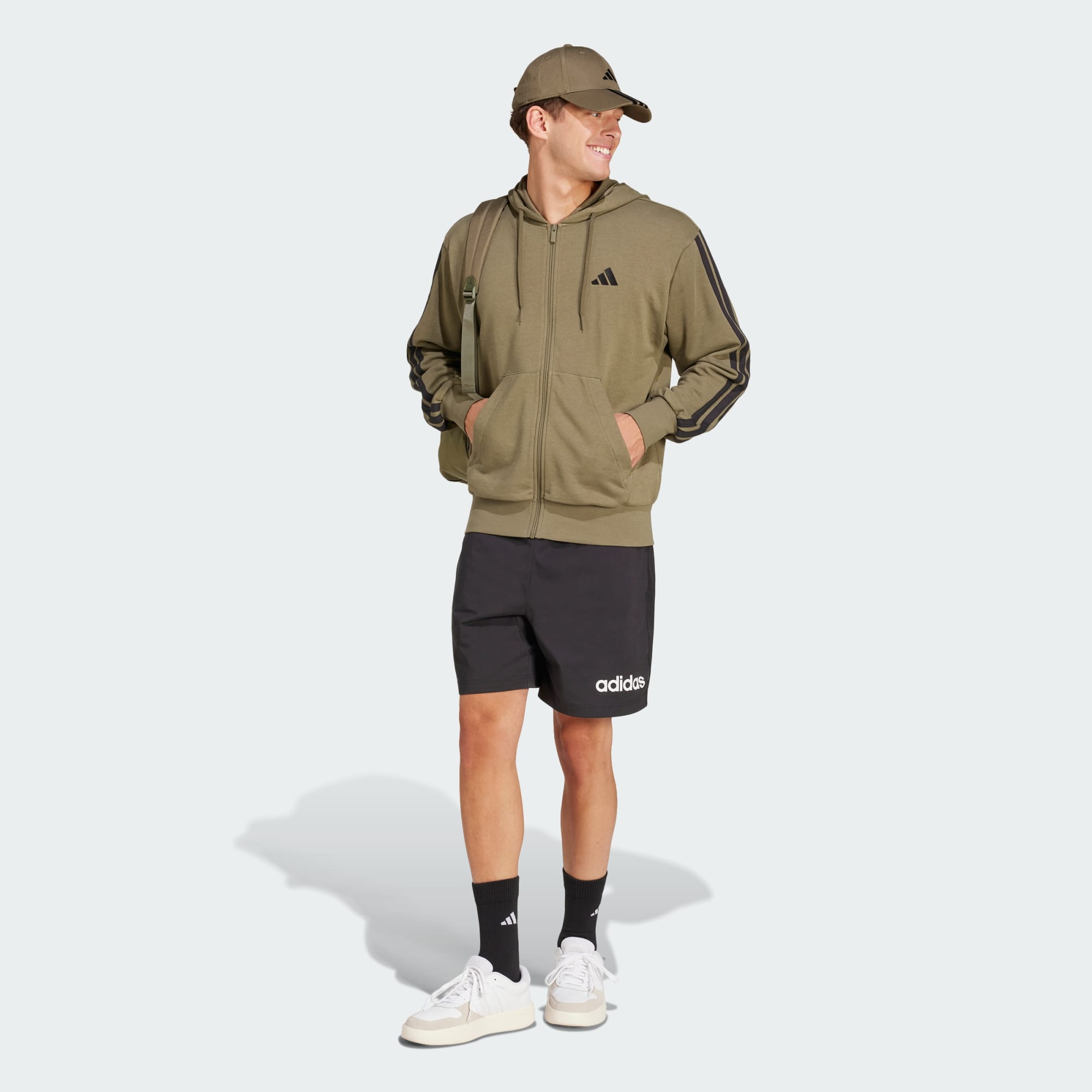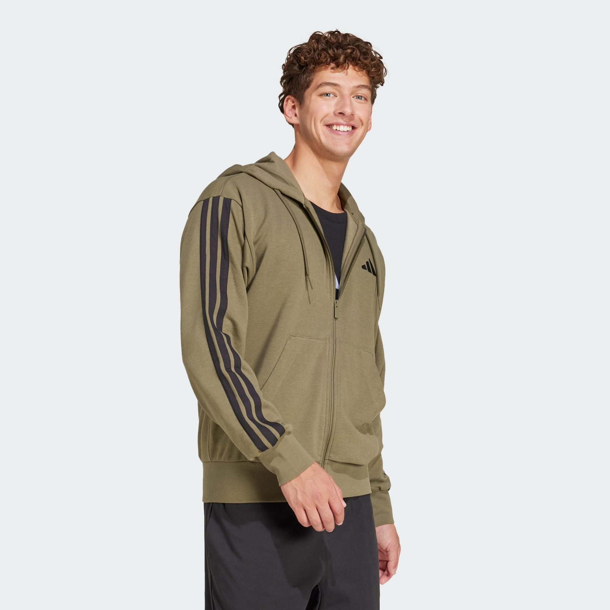 Essentials 3-Stripes French Terry Full-Zip hættetrøje