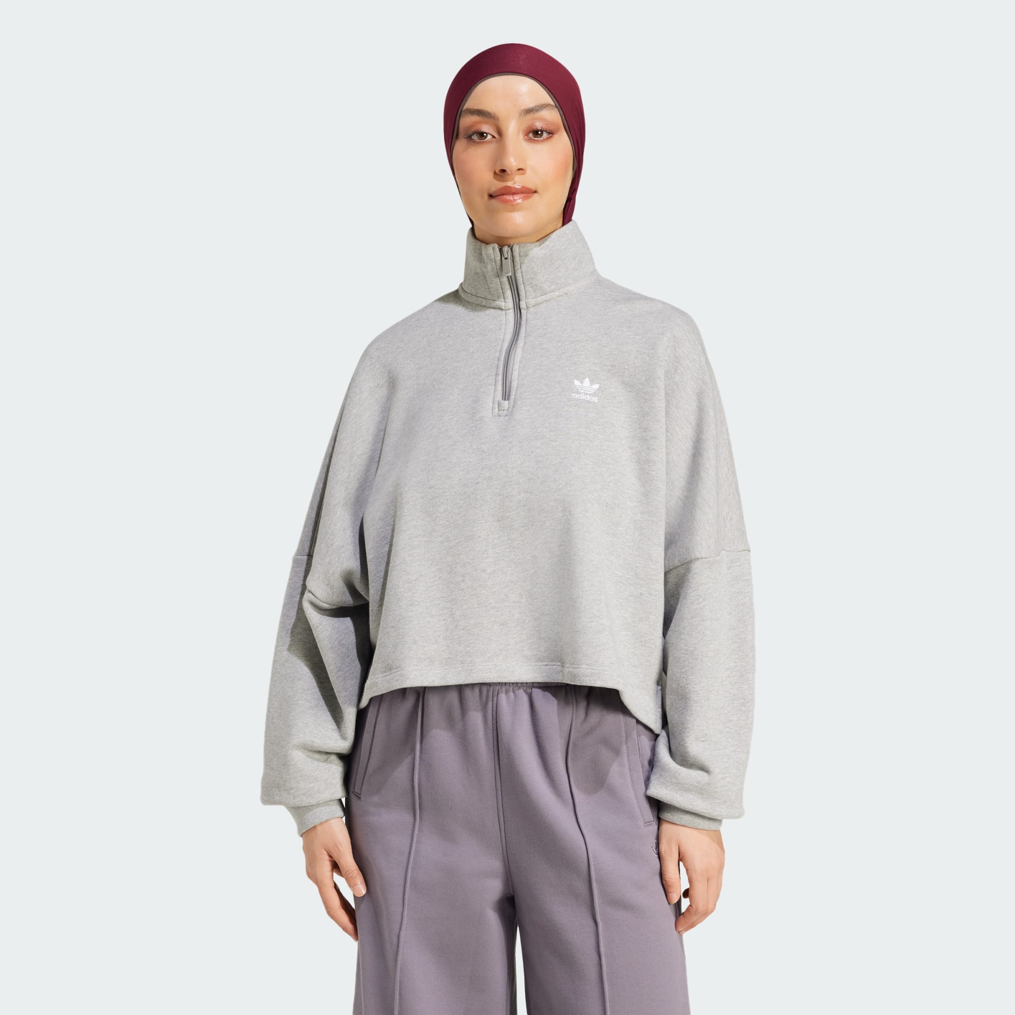 Udvid din stil i denne skate-inspirerede sweatshirt fra adidas. Blød isoli og ribopslag giver komfort, mens en lynlås i halv længde og opretstående krave holder looket klassisk. Sæt den sammen med cargobukser eller jeans for at få et tilbagelænet look, der scorer point i skateparken eller i byen.