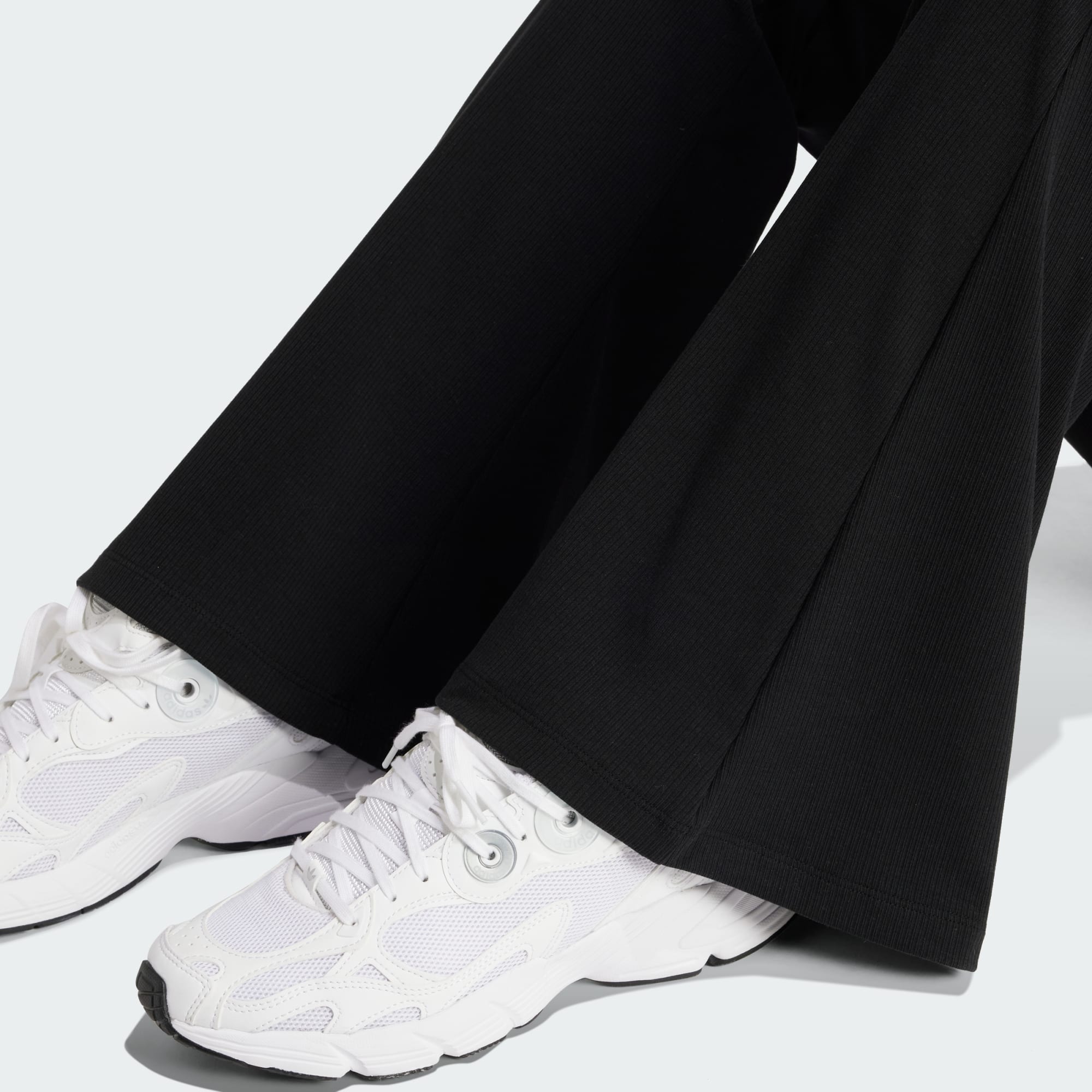 Skabt til at bevæge sig med dig. Disse sporty, men stilfulde, ribstrikkede tights fra adidas har en tætsiddende, strækbar pasform, der åbner sig i vidde bukseben. Tag dem på til en afslappet dag derhjemme, eller bær dem, når du skal i byen, for både på farten og i hvile gør de, at du kan føle dig støttet og chik.