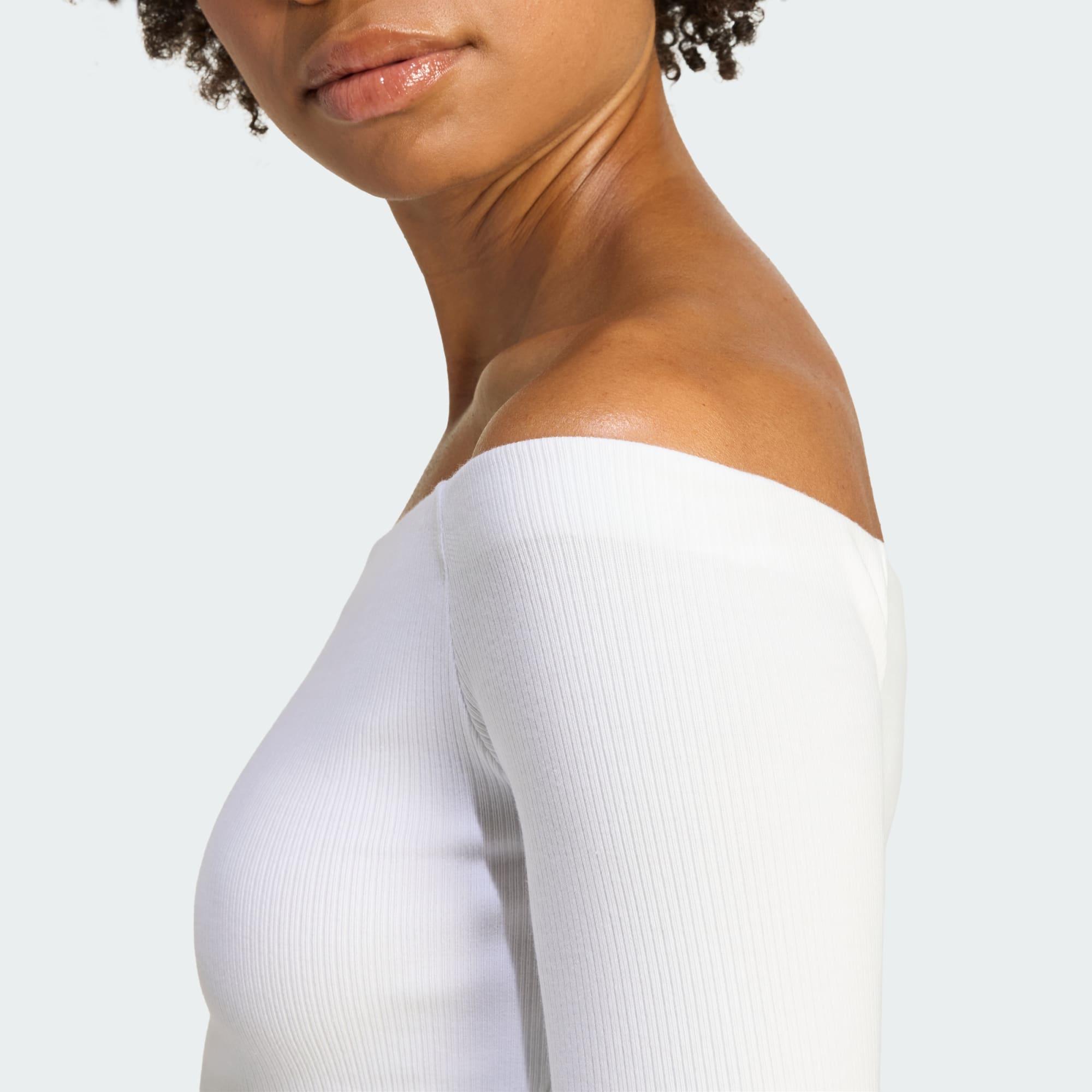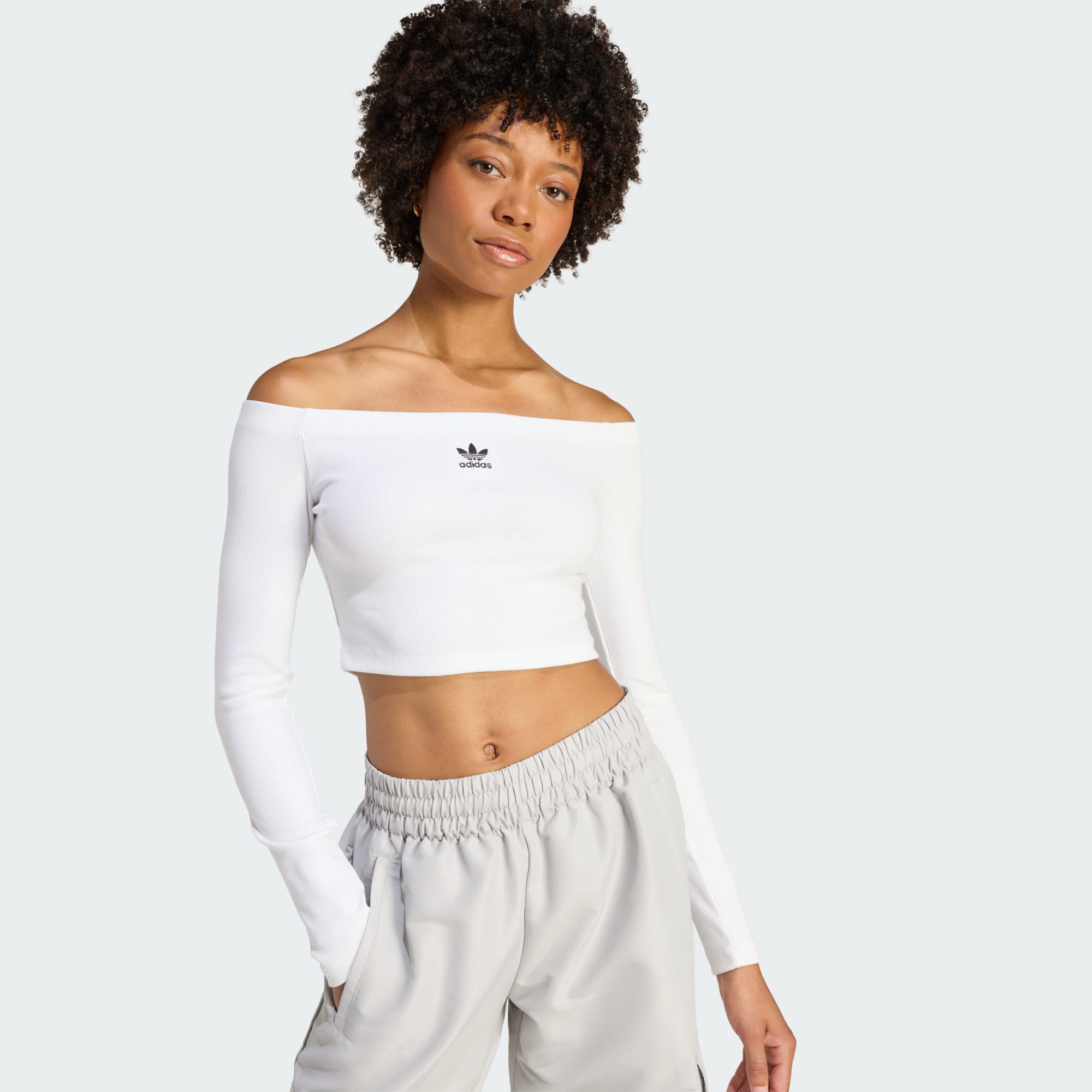 Stil møder komfort med den langærmede Essentials Off Shoulder-T-shirten i ribstrik. Designet til dig, der søger flot stil, tilbyder dette stykke tøj et alsidigt look, der ubesværet passer ind i din hverdagsgarderobe. Off-shoulder-designet tilføjer et strejf af elegance, hvilket gør den til et godt valg til både casual udflugter og sociale sammenkomster. Denne top er fremstillet i et ribstrikmateriale og har en slank pasform, der komplementerer din silhuet. Brugen af et behageligt strikstof giver en blød berøring mod din hud, så du kan bevæge dig frit og selvsikkert. adidas Originals giver dig et stykke tøj, der skaber et stilfuldt statement, selv når du slapper af derhjemme. Omfavn alsidigheden i denne unikke, moderigtige T-shirt, og lad den blive en fast bestanddel af din garderobe.