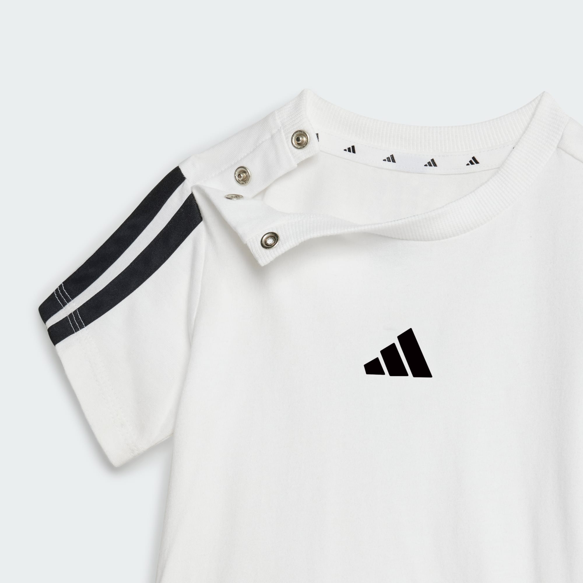 Din lille guldklump bliver klar til at lege i dette adidas-sæt til småbørn. En T-shirt i ren bomuld og matchende shorts går let fra leg til hygge. Det bløde og behagelige sæt er en uundværlig del af enhver lille garderobe.