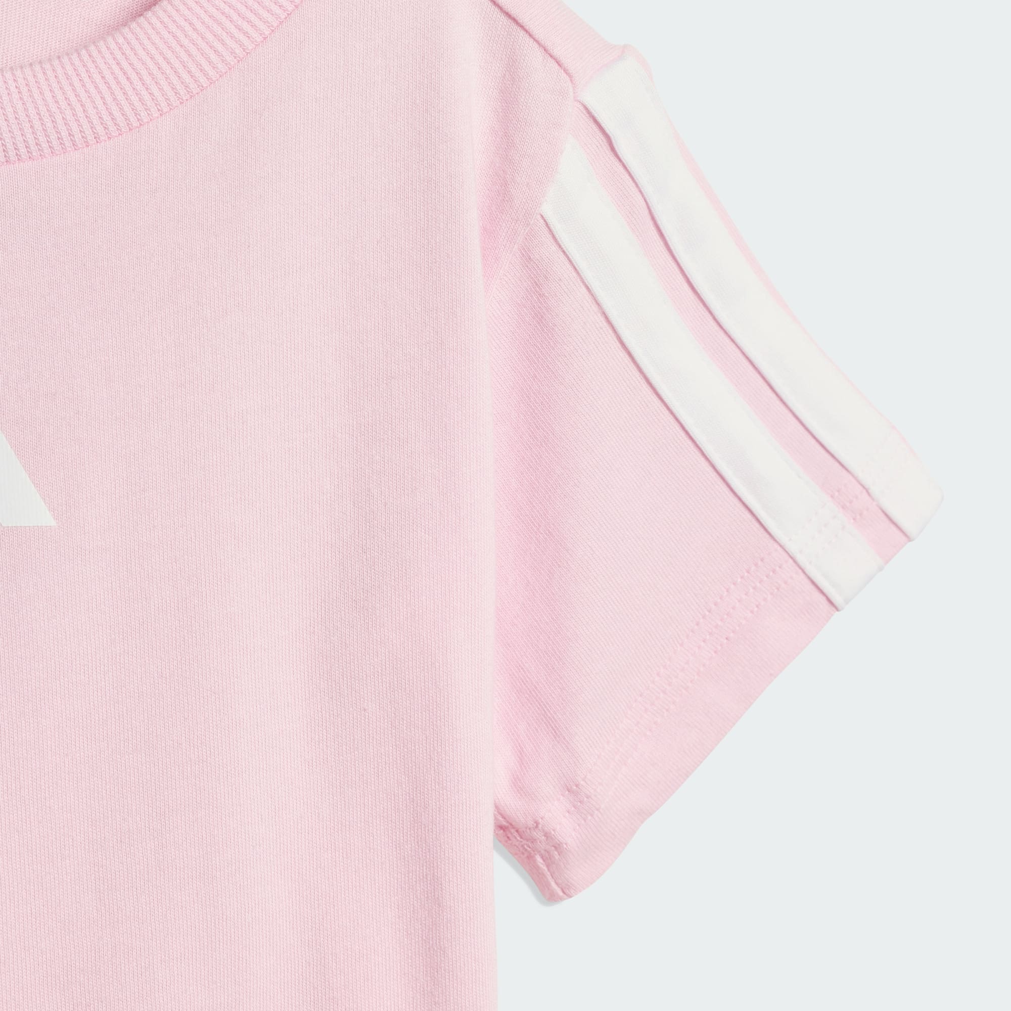 Din lille guldklump bliver klar til at lege i dette adidas-sæt til småbørn. En T-shirt i ren bomuld og matchende shorts går let fra leg til hygge. Det bløde og behagelige sæt er en uundværlig del af enhver lille garderobe.