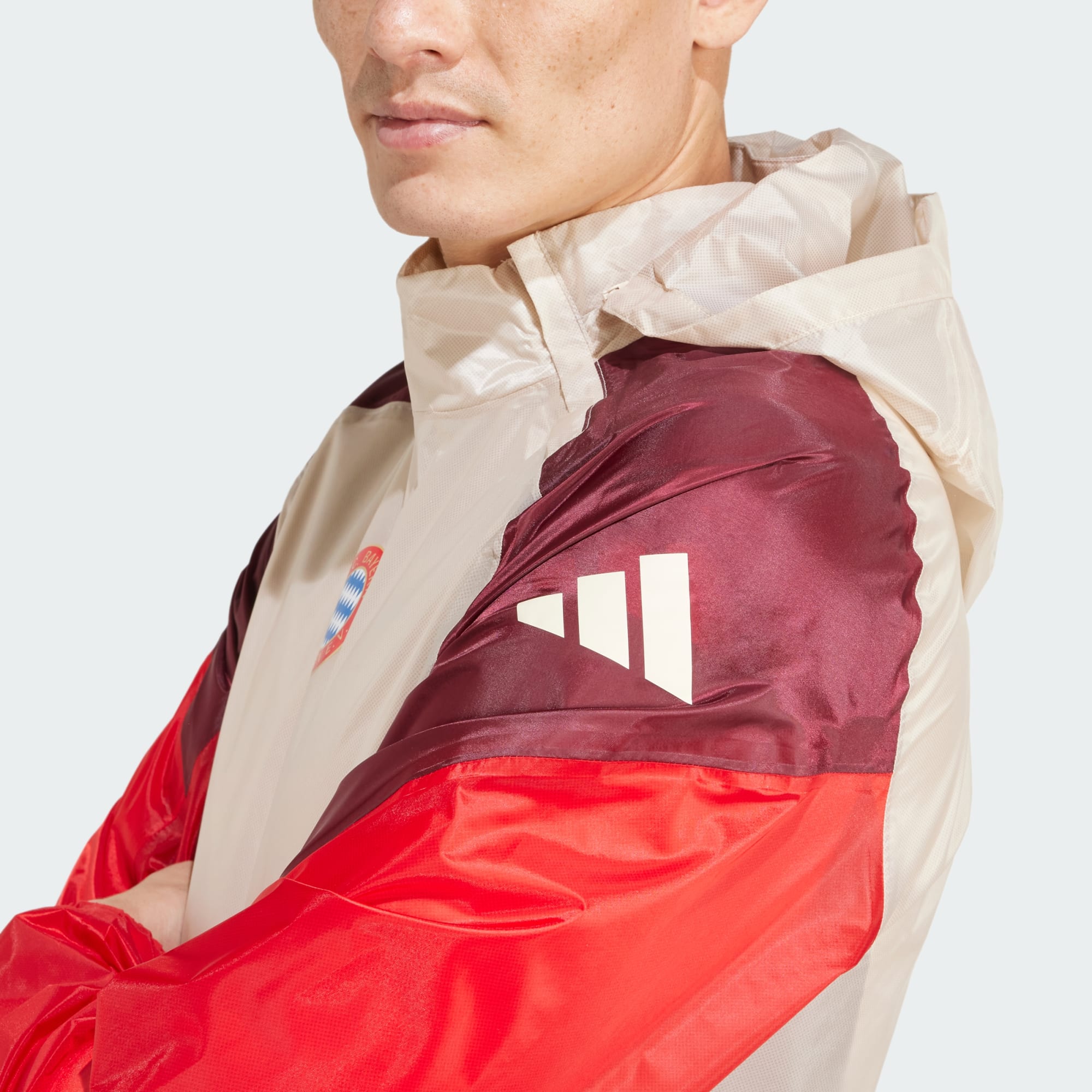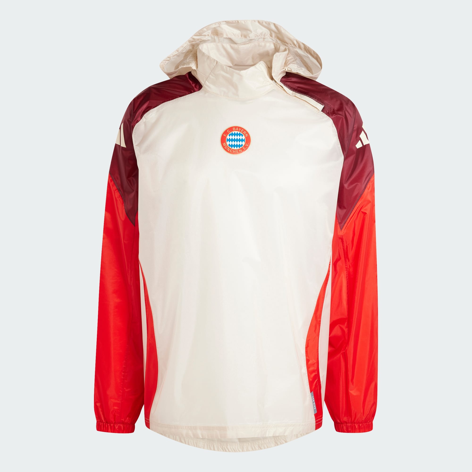 An FC Bayern rain jacket to keep you dry, made with recycled materials.