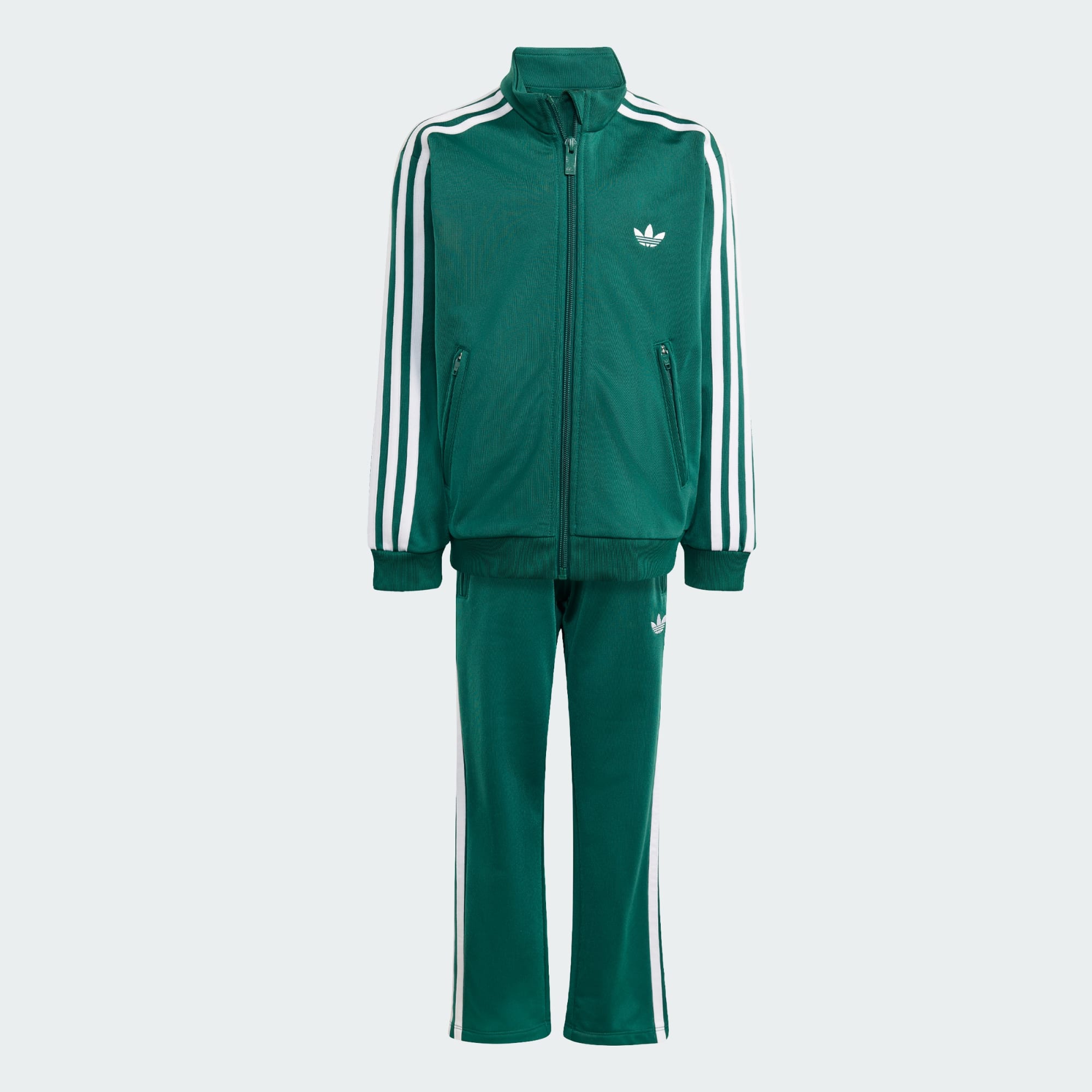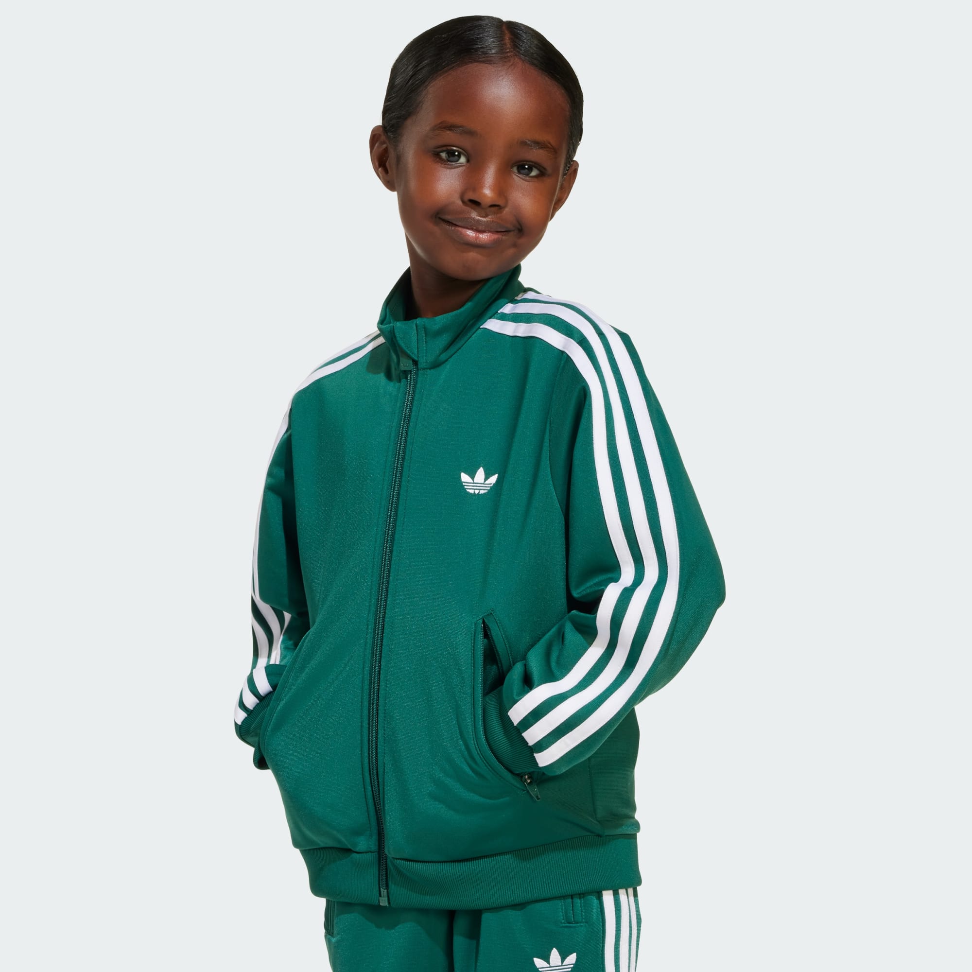 Firebird-træningsdragten er et tidløst design, der afspejler ånden i Adicolor-kollektionen, og er en hyldest til vores rige historie, der blander ikonisk branding med moderne håndværk. Den er fremstillet af trikotstof og tilbyder en behagelig pasform til hverdagens eventyr, uanset om det er leg i skolen eller en afslappet dag ude. Den løstsiddende top og den normalt siddende underdel giver dig bevægelsesfrihed, mens en fuld lynlåslukning gør toppen nem at have på og justere. Det broderede Trefoil-logo fuldender looket med et strejf af adidas-ægthed. Designet med et nik til fortiden og en vision for fremtiden, er dette træningssæt et bevis på adidas' engagement i kvalitet og design. Omfavn det ikoniske Firebird-design, og lad dit barn opleve historien fra adidas Originals.