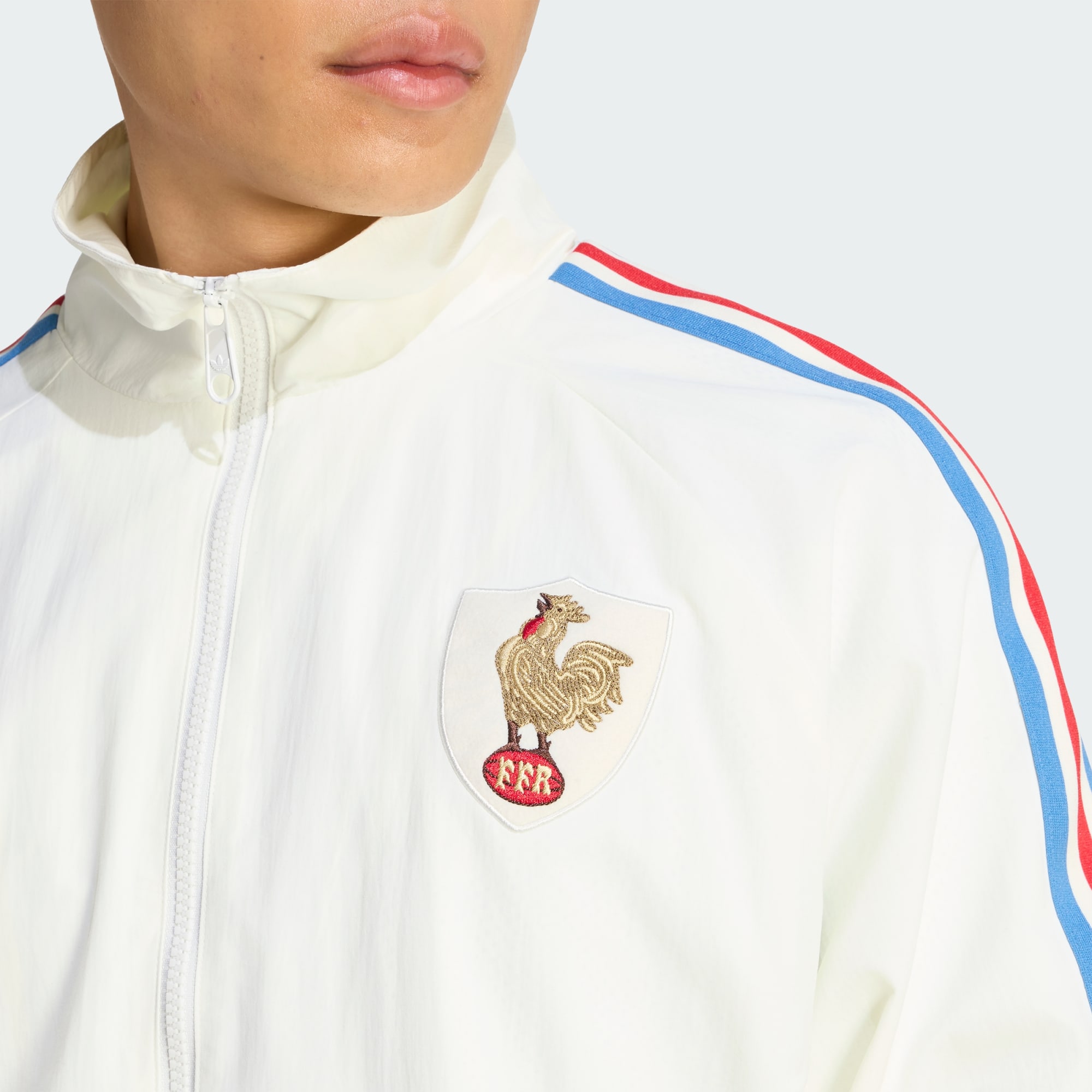 Vær med til at fejre rugbyens spændende historie med denne France Rugby 120 Years Crunch Anthem-jakke. Jakken er inspireret af den ikoniske rivalisering mellem Frankrig og England og hylder den første kamp, der blev spillet i 1906. De stilrene, underspillede detaljer og det himmelblå design afspejler de trøjer, der blev båret under den historiske kamp, og bringer et strejf af nostalgi til dit moderne træningstøj. Denne jakke er fremstillet af hurtigttørrende materiale, så du kan føle dig godt tilpas, uanset om du hepper fra tribunen eller tager kampen op mod vind og vejr. Den almindelig pasform og lynlåslukningen giver en tætsiddende, men fleksibel fornemmelse, så den er perfekt at have på over dit foretrukne rugbytøj. Med denne jakke kombinerer adidas stil med funktionalitet og inkorporerer innovativ teknologi, så du får både lethed og komfort. Grib energien fra Le Crunch, og vis din støtte med stolthed i dette markante valg fra 120Y FFR-kollektionen.