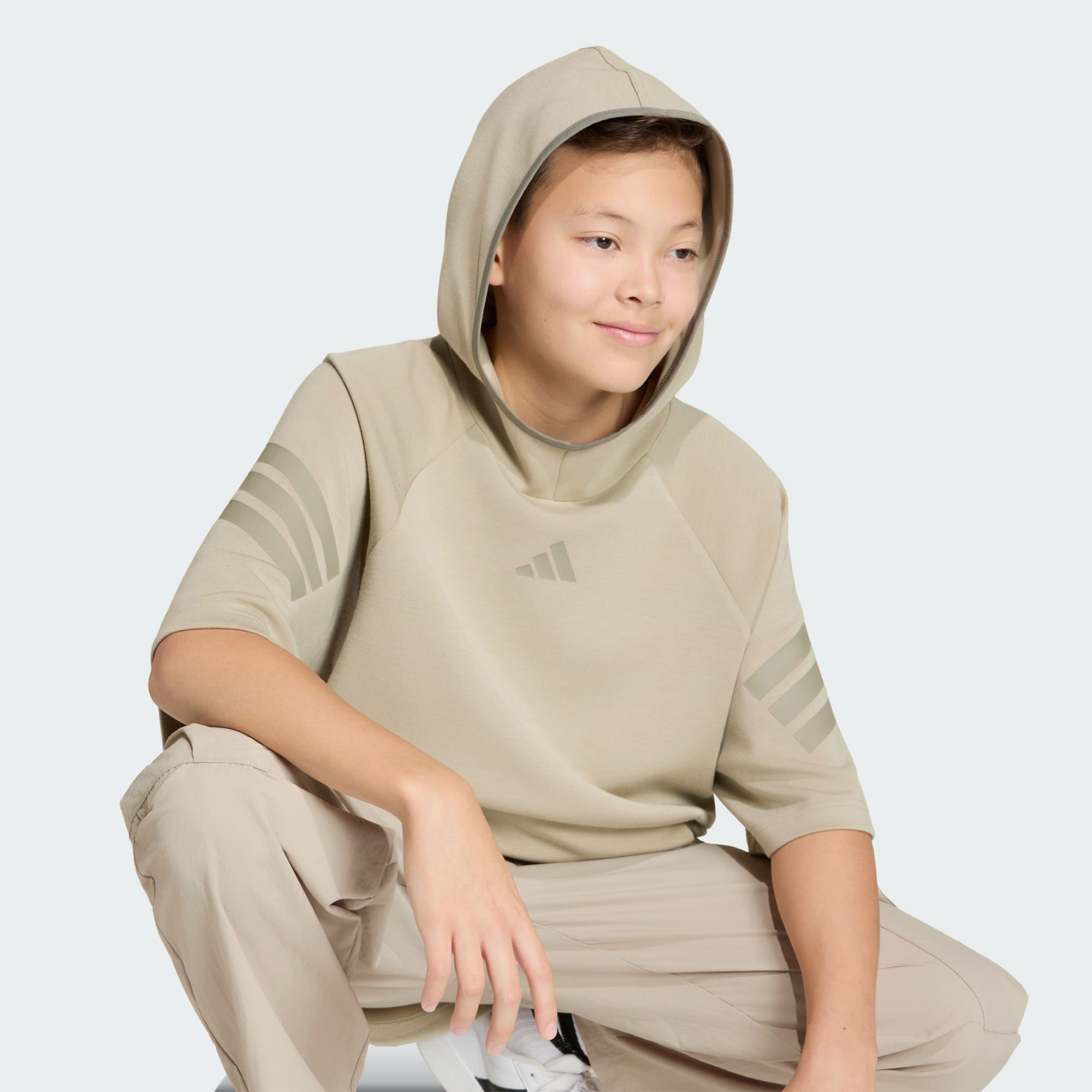 Stil møder komfort med Future Icons 3 Stripes-hættetrøjen med korte ærmer. Den er designet til hverdagens alsidighed, samtidig med at den skaber et statement af modernitet og tidløst design. Det eksklusive strikstof giver et luksuriøst og behageligt touch, der er fantastisk til aktive eller afslappede dage. Det løse design giver en afslappet silhuet for nem bevægelse og alsidighed over dine foretrukne sporty eller casual looks. Uanset om du skal til en sammenkomst med venner, forbereder dig til en træningssession eller slapper af derhjemme, er denne hættetrøje skabt til problemfri overgange fra sport til fritid. Den ikoniske adidas 3-Stripes-branding og 3 Bar-logoet tilføjer et strejf af stil og viser et engagement i innovativ kvalitet og en aktiv livsstil. Omfavn fremtiden med denne hættetrøje, der er designet til at være et stilfuldt supplement til din hverdagsgarderobe.