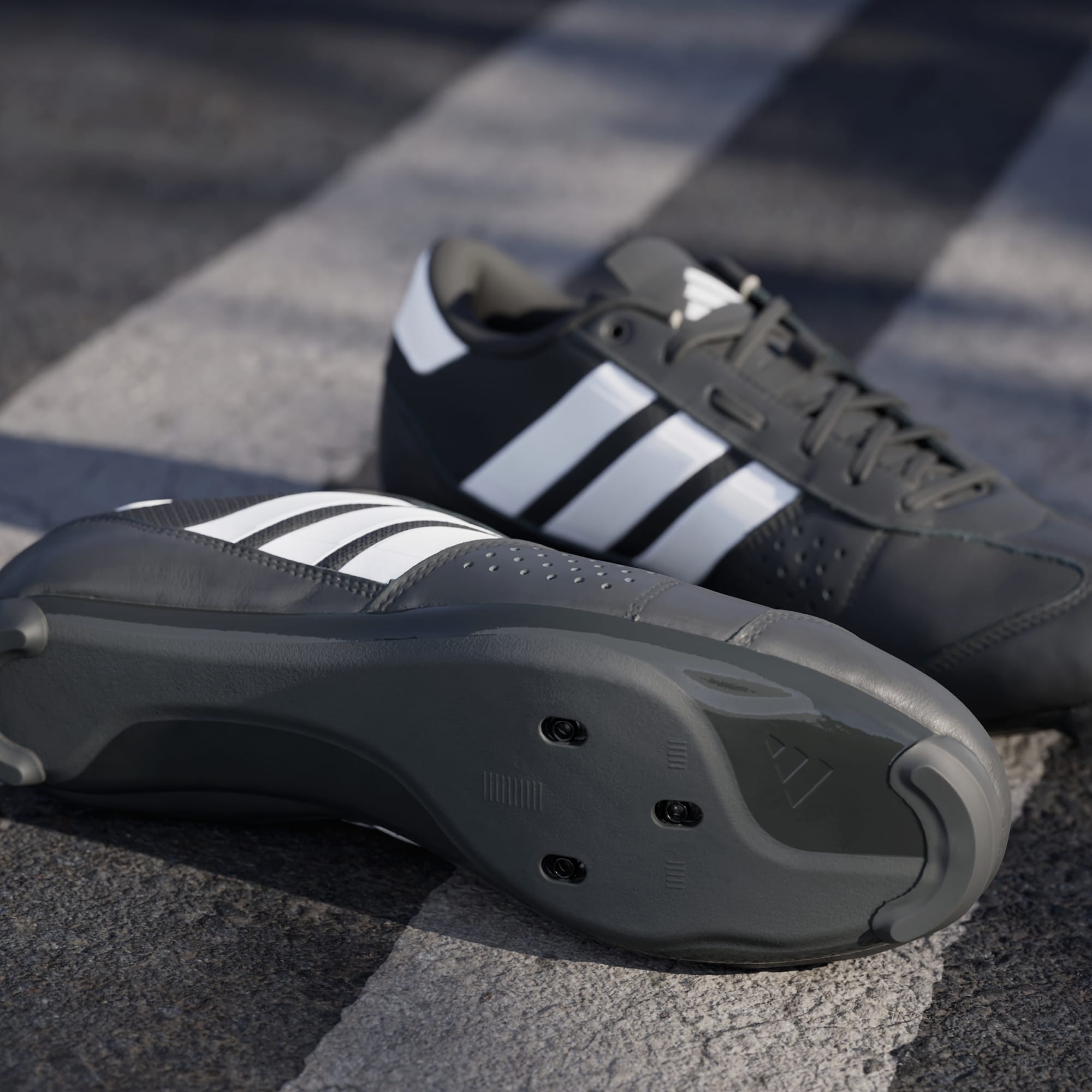 Disse adidas Heritage Road-cykelsko hylder cykelsportens rige arv med et moderne bud på ikoniske sko med snørebånd. Disse cykelsko i fuldnarvet læder kombinerer den seneste teknologi med en klassisk cykelstil. Det unikke, ventilerende design svøber sig om foden for at give en behagelig pasform med en fastlåst følelse til aggressiv cykling. En fiberglasforstærket plade giver effektiv kraftoverførsel, og de er kompatible med tre huller til pedaler. Skridsikre ydersålspuder giver stabilitet, når du ikke er på cyklen, og 360-graders reflektering giver synlighed i lav belysning.