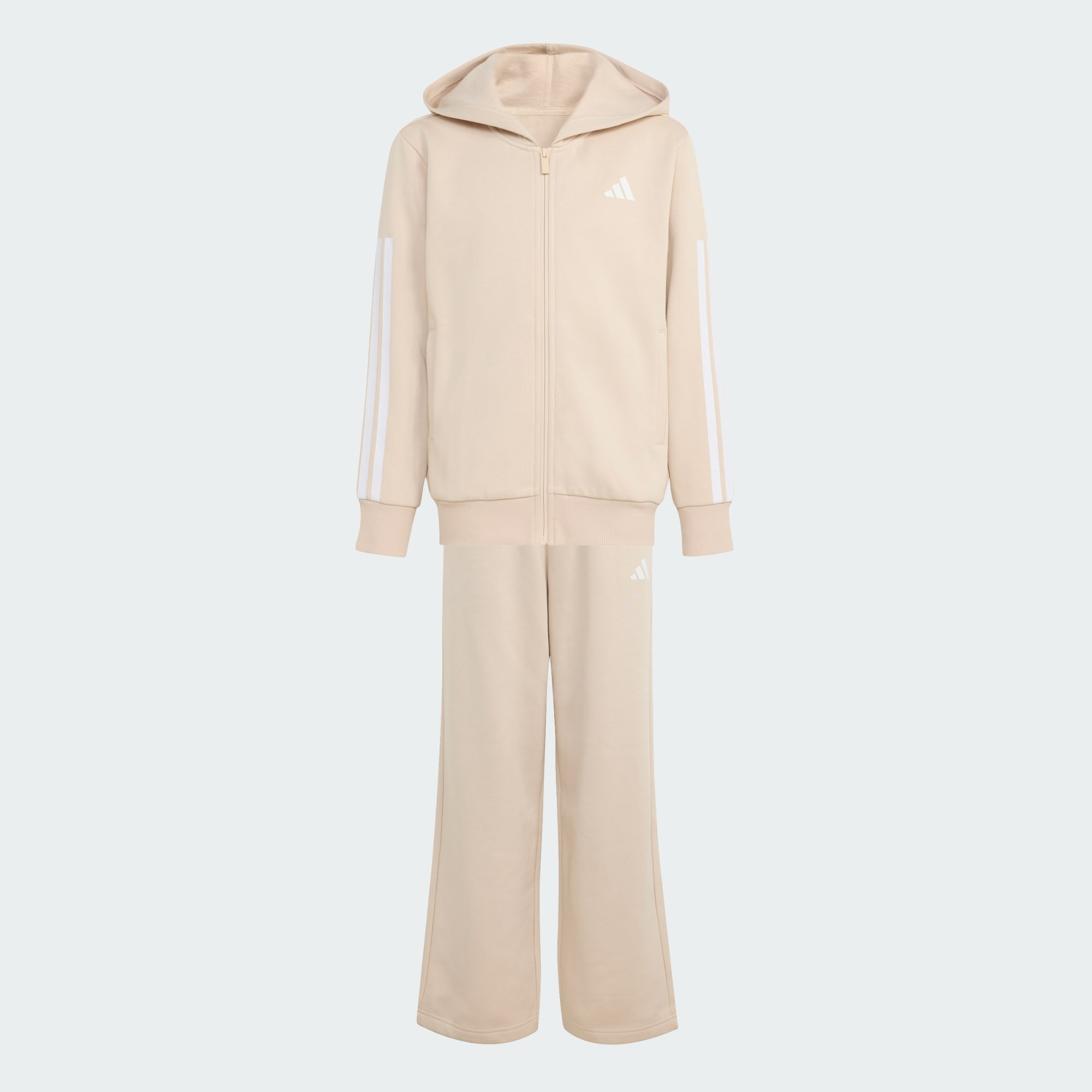 Denne adidas-træningsdragt i juniorstørrelse handler om alsidighed. Du kan kombinere delene for et afslappet look eller mikse og matche dem med andre favoritter i din garderobe. Uanset hvordan du har den på, indhyller blød fleece dig i behagelig komfort, der er perfekt til afslapning eller til at tage ud på kølige dage.