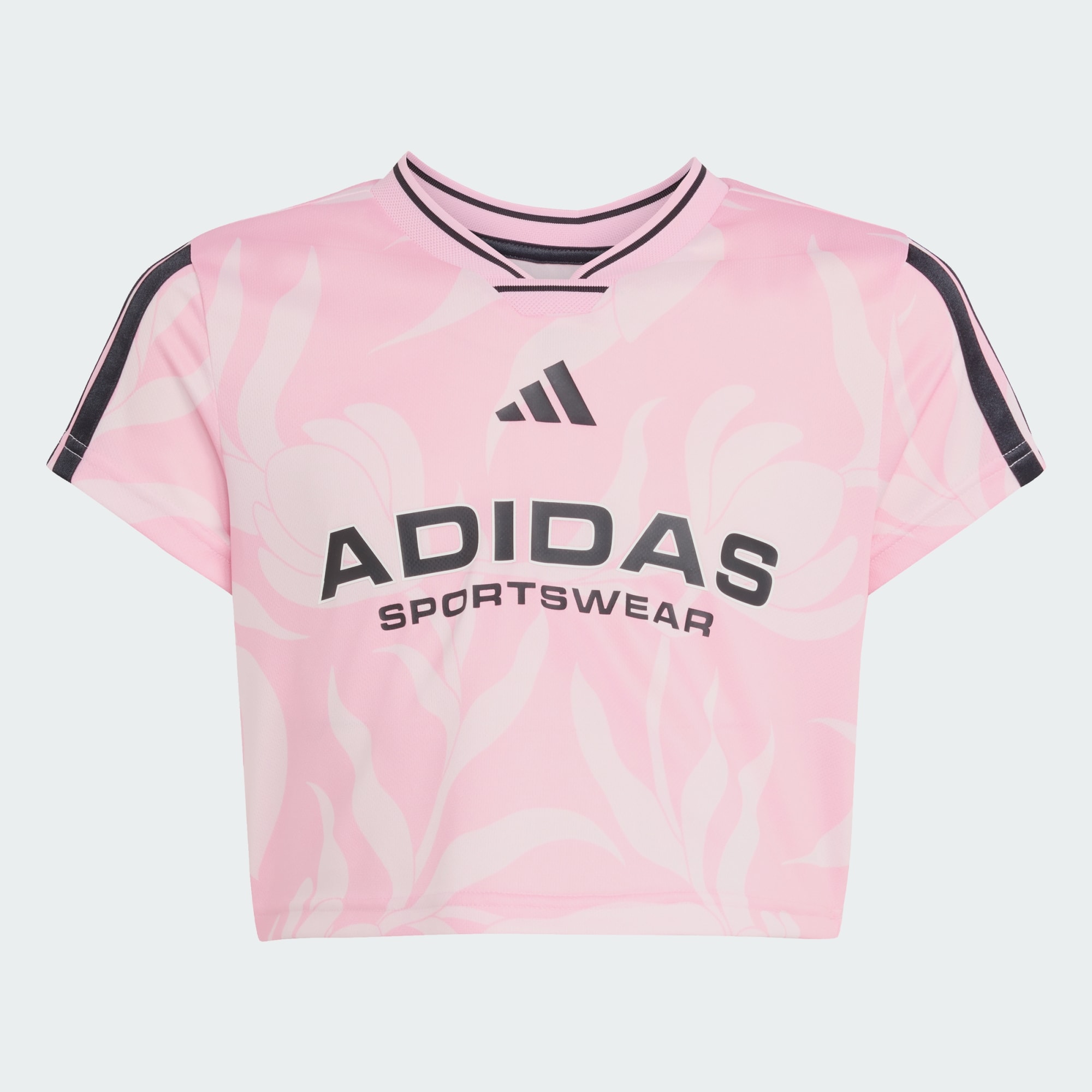 This juniors' football-inspired tee from the House of Tiro collection takes the iconic 3-Stripes and 3 Bar Logo and reimagines them for the fashion-forward fan. The soft doubleknit fabric keeps you comfortable so you can rep your team in style. Pair it with high-waisted shorts for a winning match-day look.