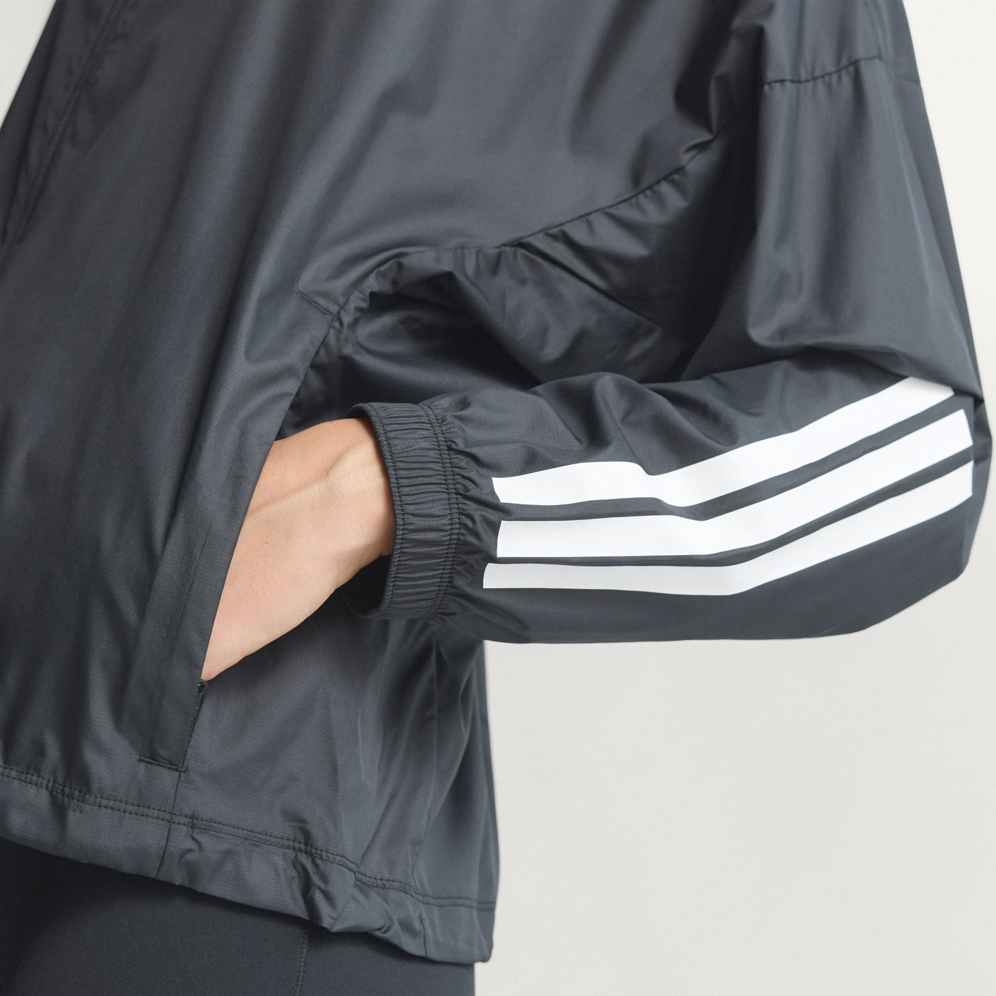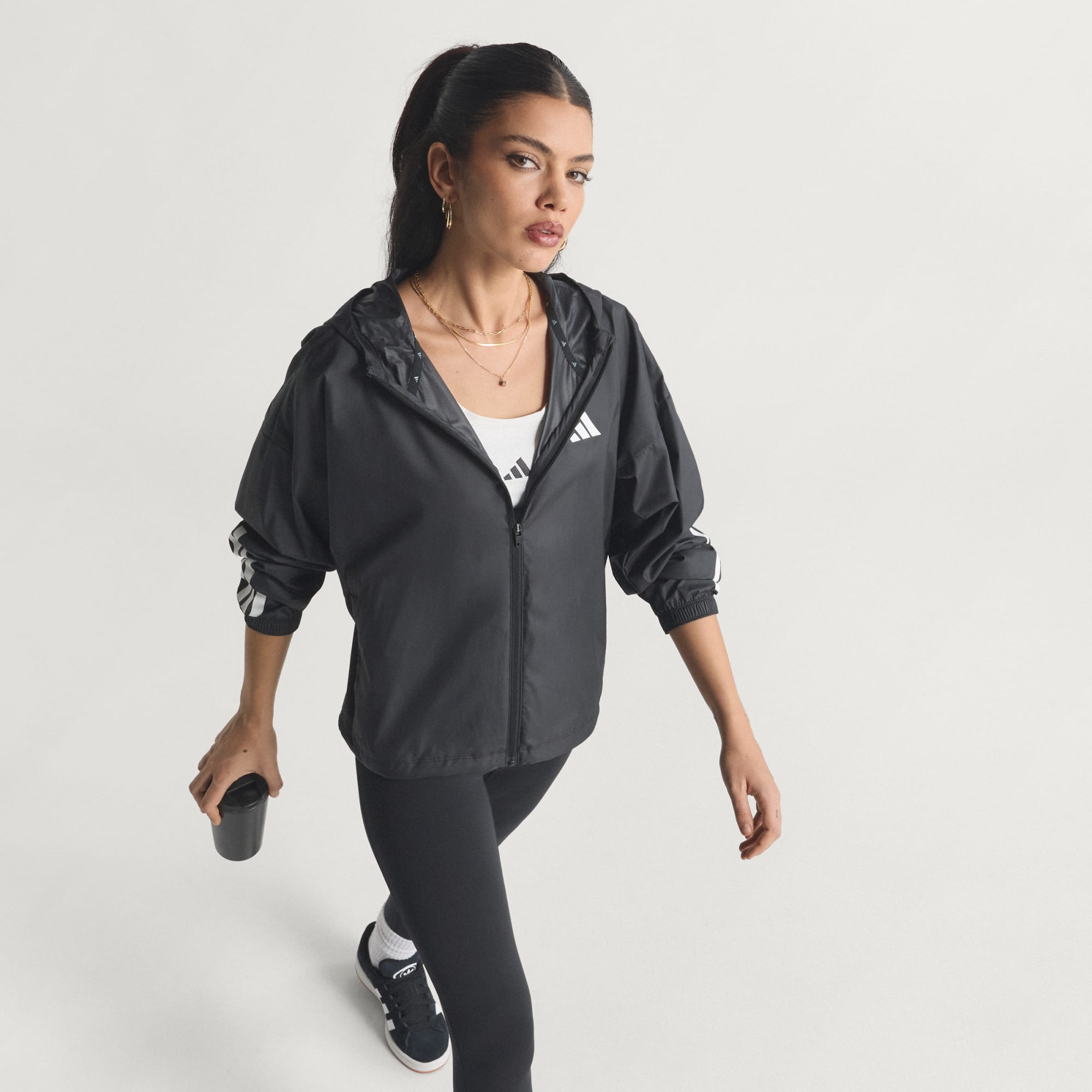 Hyperglam 3-Stripes-windbreaker er det oplagte valg, når det kommer til stil og ydeevne. Denne langærmede windbreaker er designet til dig, der lever livet på farten, og tilbyder en løs pasform, der komplementerer din aktive livsstil. Dette stykke tøj indeholder adidas' Clima365-teknologi, som er en serie af højteknologiske stoffer, der er designet til at holde dig klar til sport. Den er fremstillet af vindtæt og vandafvisende materialer, der holder dig tør og veltilpas i blæsende vejr. Med lynlåslommer i siden og en buet søm med snøretræk giver denne adidas-windbreaker dig mulighed for at tilpasse pasformen, mens du har dine vigtigste ting lige ved hånden. Den fulde lynlåslukning og hætten giver alsidighed, mens de trykte 3-Stripes på ærmerne tilføjer et strejf af dristighed til dit look. Bær den på vej fra træning til et afslappet møde med vennerne, og vis din stil frem med selvtillid.