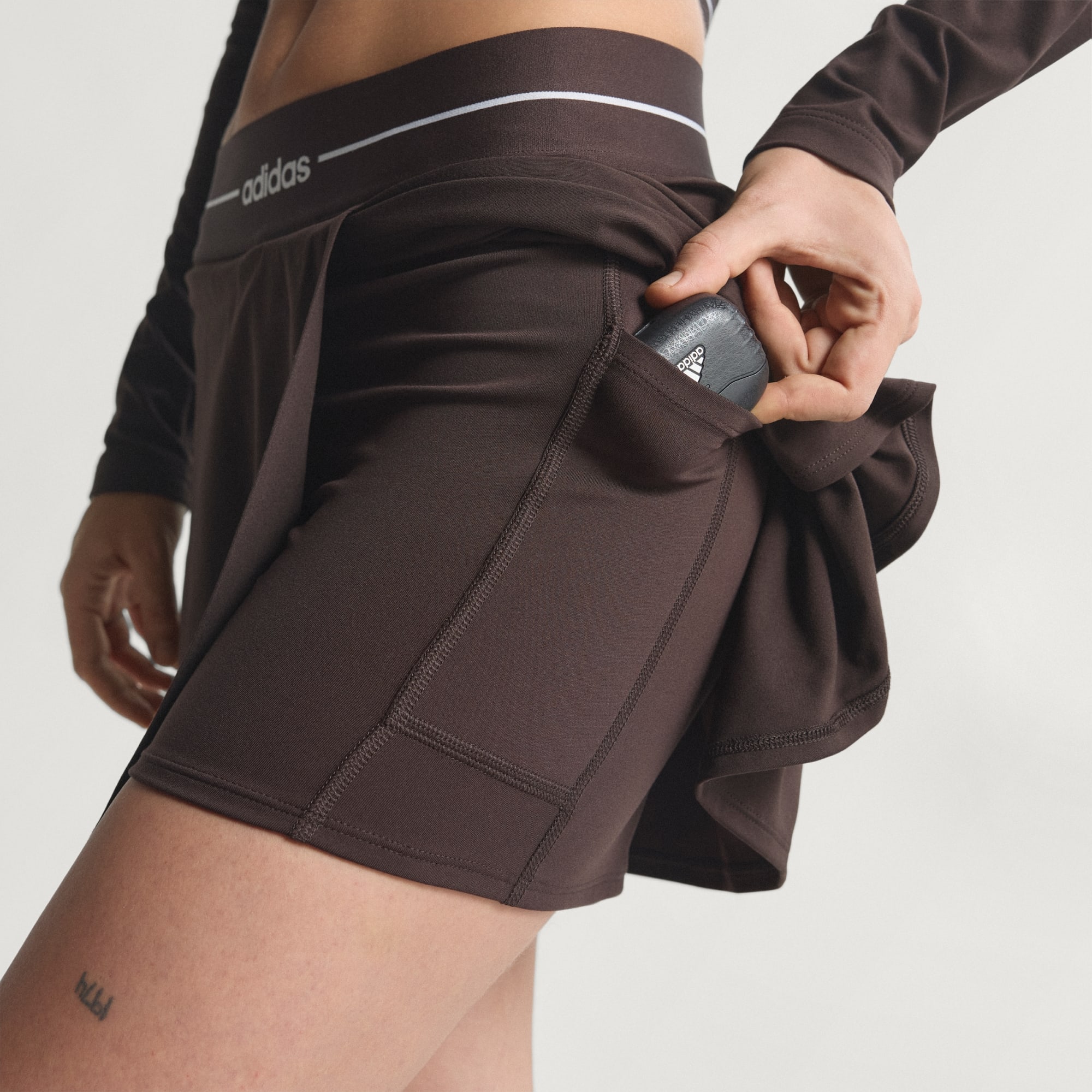 Stil møder funktionalitet med adidas Hyperglam Skort. Den er designet til at følge dine bevægelser og blander det glamourøse look fra en nederdel med dækning fra indbyggede shorts, hvilket giver nem overgang fra træningssessioner til sociale sammenhænge. En høj talje giver en glat silhuet og en sikker, støttende fornemmelse, mens jacquard-elastik med lineært logo tilføjer en diskret adidas-finish. 2-i-1-designet er skabt til en alsidig stil, og en diskret lomme sikrer, at nøgler eller kort forbliver lige ved hånden, når du er på farten. Med svedtransporterende Climacool-teknologi holder denne skort dig frisk under træning eller når du hænger ud med vennerne. Som en del af Hyperglam-serien kombinerer den mode og praktisk anvendelighed i et alsidigt stykke. Designet af adidas til en aktiv livsstil.