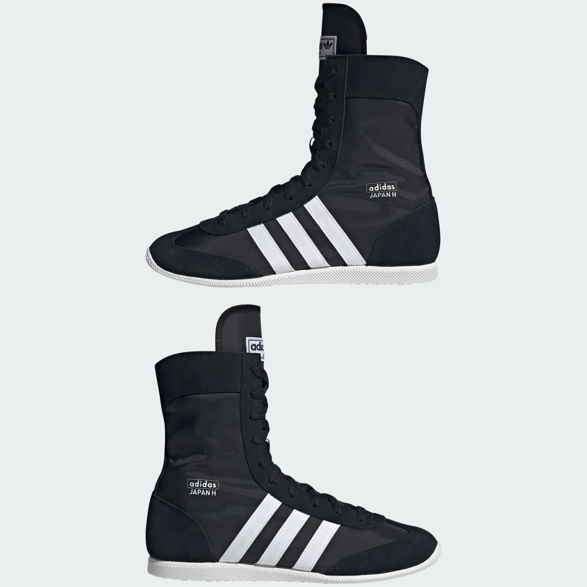 Disse Japan High-sko er inspireret af en niche-boksestøvle fra 80'erne og ophøjer de autentiske sportslinjer til luksuriøs streetwear-perfektion. Disse støvler er lavet i glat nylon med ruskind på T-tåen, hælkappen og påsætningerne, og de er snøret helt op med en høj pløs, der strækker sig ud over toppen. Den teksturerede EVA-kilesål støtter, men holder dig nede på jorden. Markante 3-Stripes og et adidas Japan H-mærke i guld pryder siderne. Tag disse støvler på sammen med shorts eller en nederdel for at vise din stil frem.