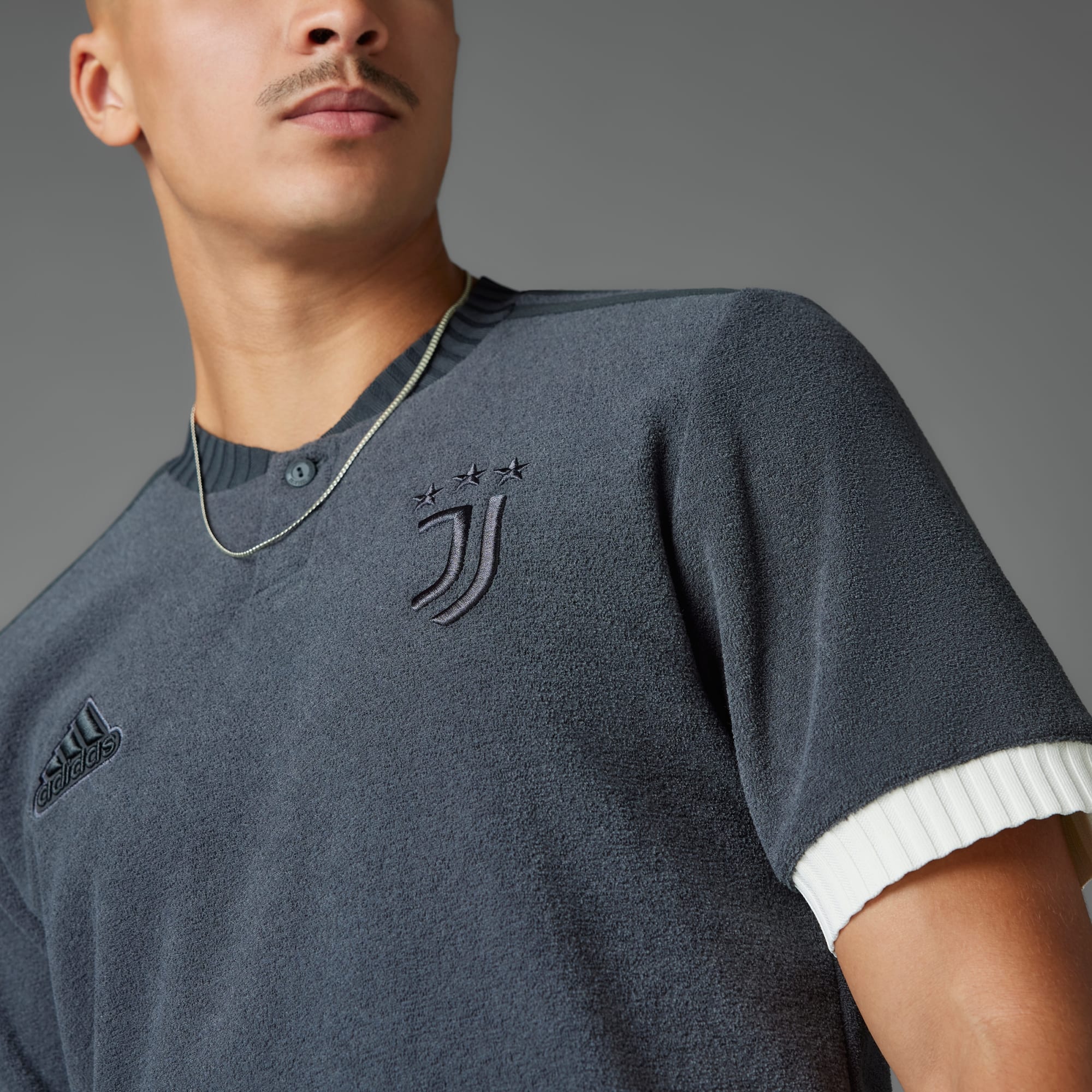 Denne Juventus-trøje fra adidas bruger klubbens iøjnefaldende tredjesæt som inspiration, men tager looket fra verdens største fodboldscener til suveræn brugbarhed uden for banen. Dens luksuriøse detaljer og isoli-stoffet ophøjer looket og fornemmelsen på denne eksklusive trøje til behagelig og stilfuld hverdagsbrug. Den fuldendes af nuancefarvede mærker, der skaber et rent, sprødt look, som uden tvivl vil blive værdsat langt ud over klubbens passionerede fanbase. Dette produkt er lavet af 100 % genanvendte materialer og er én af vores løsninger, der hjælper med at reducere plastikaffald.