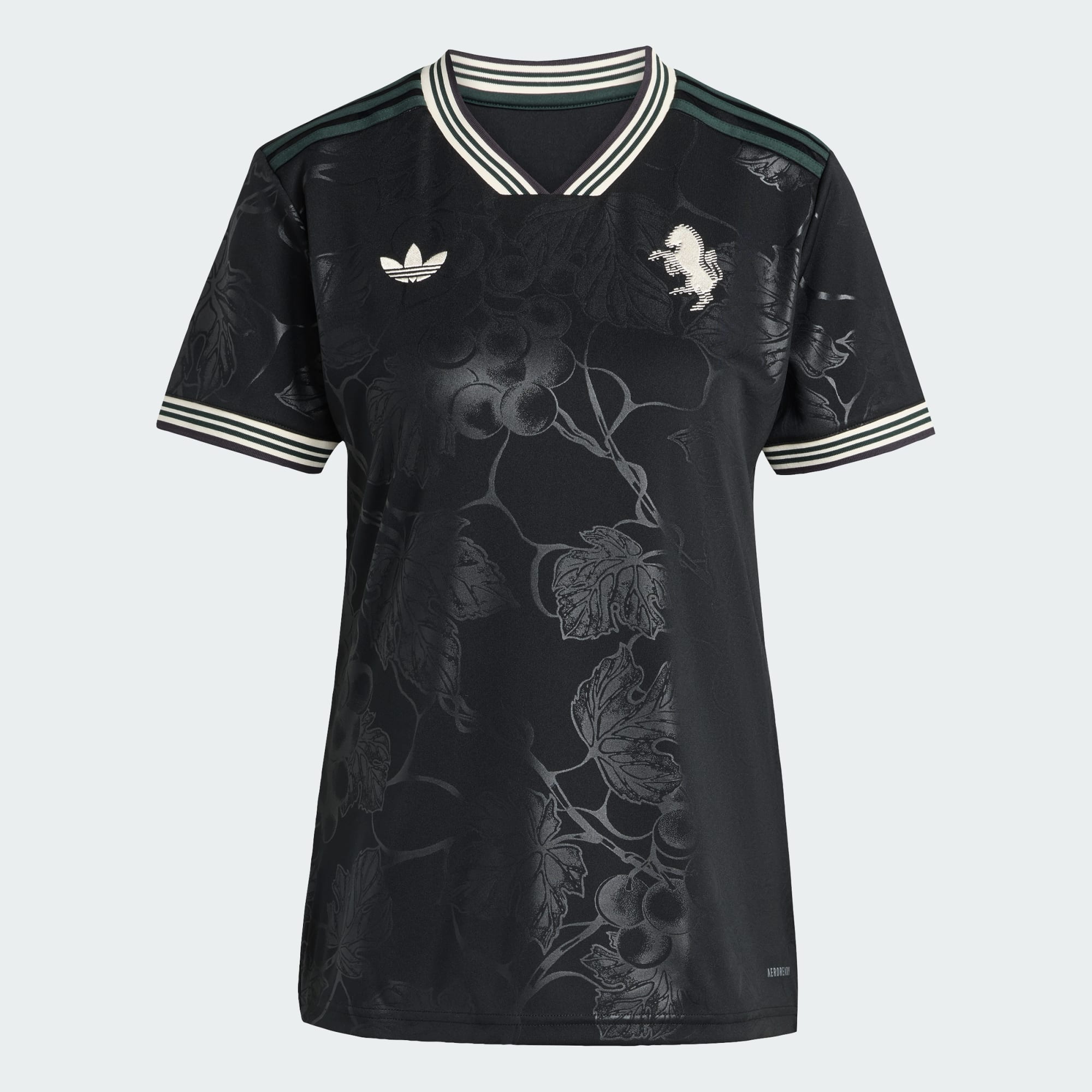 Løft glasset for dine fodboldhelte i en Juventus-trøje, der hylder Piemonts vinfremstillingstradition. Et broderet adidas Trefoil og et klassisk klubmærke skiller sig ud fra de sorte farver og kombinerer diskret, vingårdsinspireret grafik for at skabe et underspillet og elegant look. Denne trøje er skabt til at holde fans behagelige og afslappede og har et blødt materiale og fugtregulerende AEROREADY.