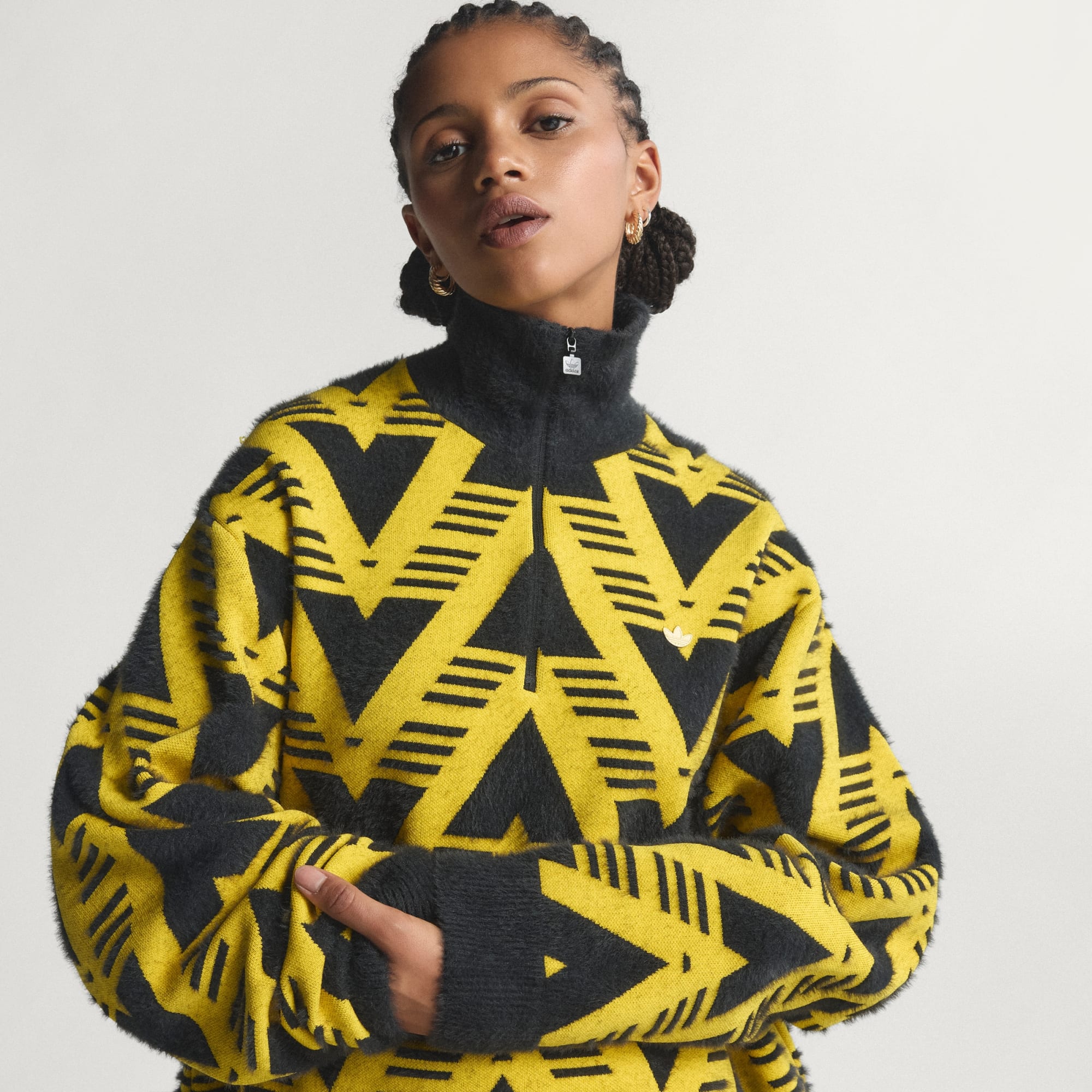 En oversize pullover med en halv lynlåslukning, så den er let at tage af og på.
