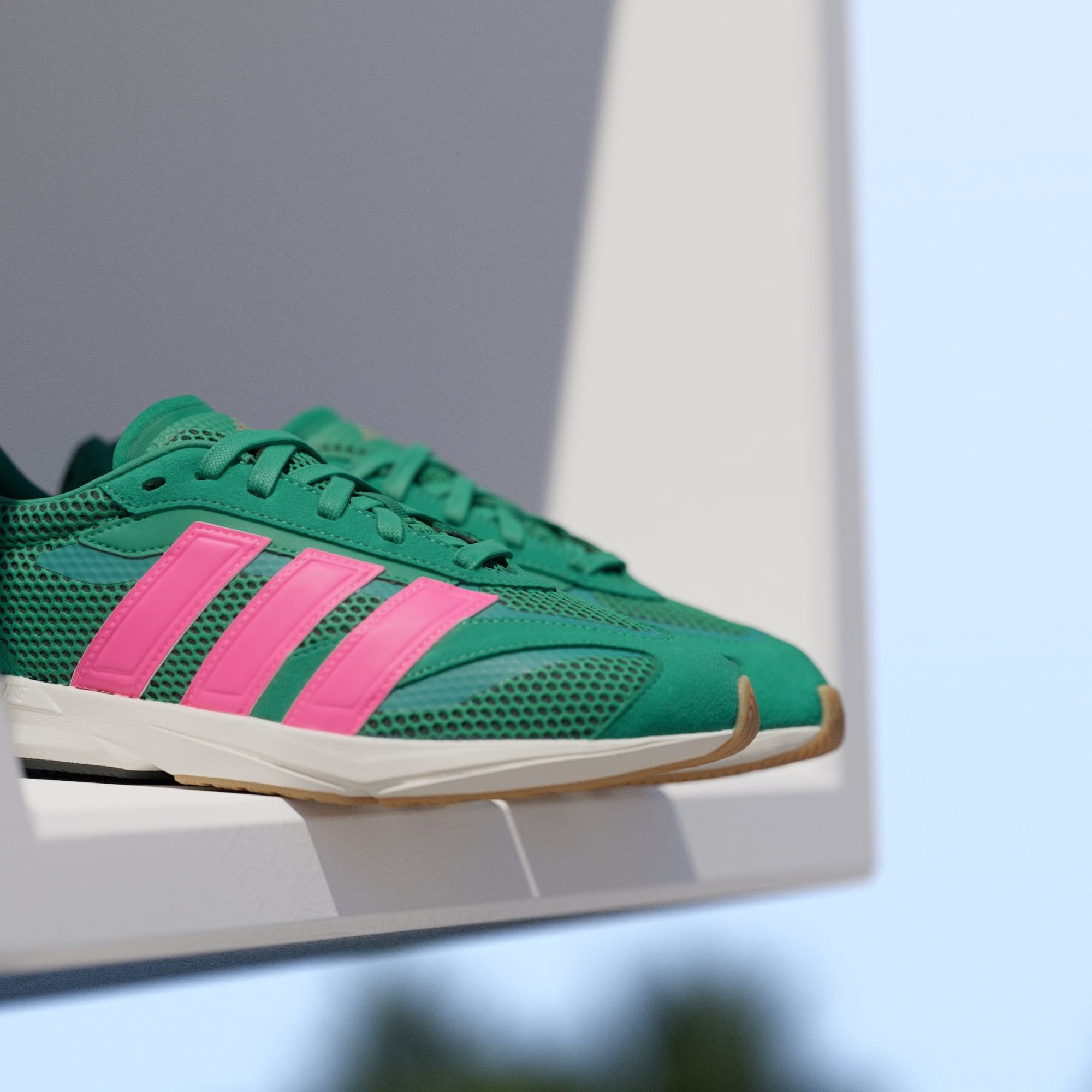 Disse sneakers, der er inspireret af det bedste fra adidas Running, bringer letvægtskomfort og moderne design til din hverdagsstil. Mesh-overdelen er fremhævet med påsætninger af ruskind og imiteret læder for et sporty look, der passer godt til alt fra tights til jeans. Lightstrike-mellemsålen dæmper hvert skridt, mens ydersålen i gummi griber fat i fortovet.