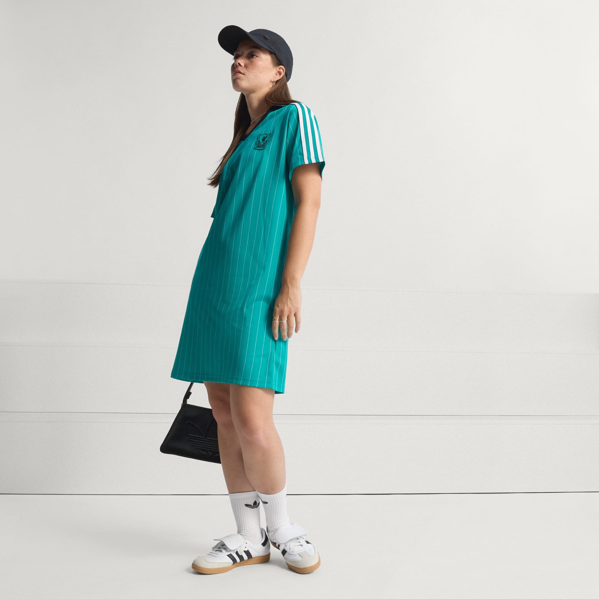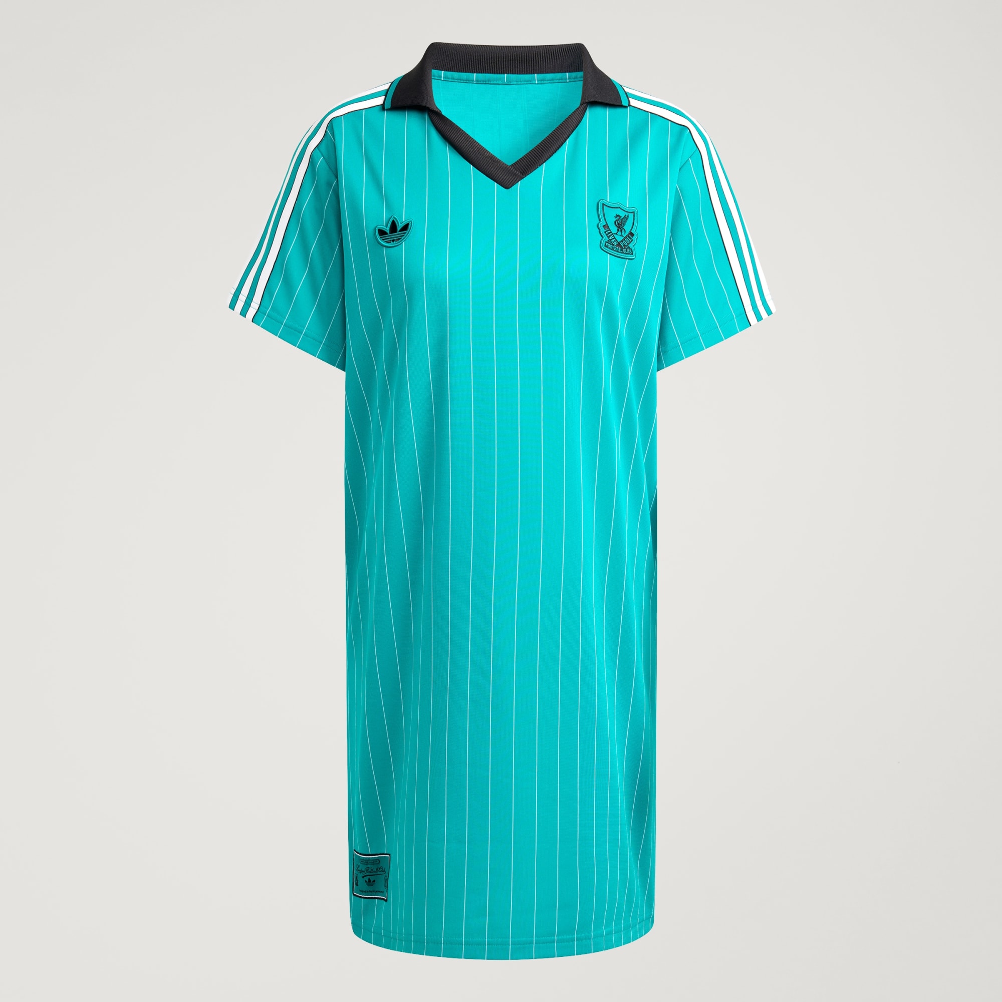 Denne Liverpool FC-kjole fra adidas lader dig tage din støtte til din klub med overalt. Inspireret af ikonisk 80'er-fodboldmode gentænker den en klassisk nålestribet kamptrøje i en polokjole-silhuet. På brystet viser et broderet holdvåben og et Trefoil-logo stolt din loyalitet til de røde og din sporty stil.
