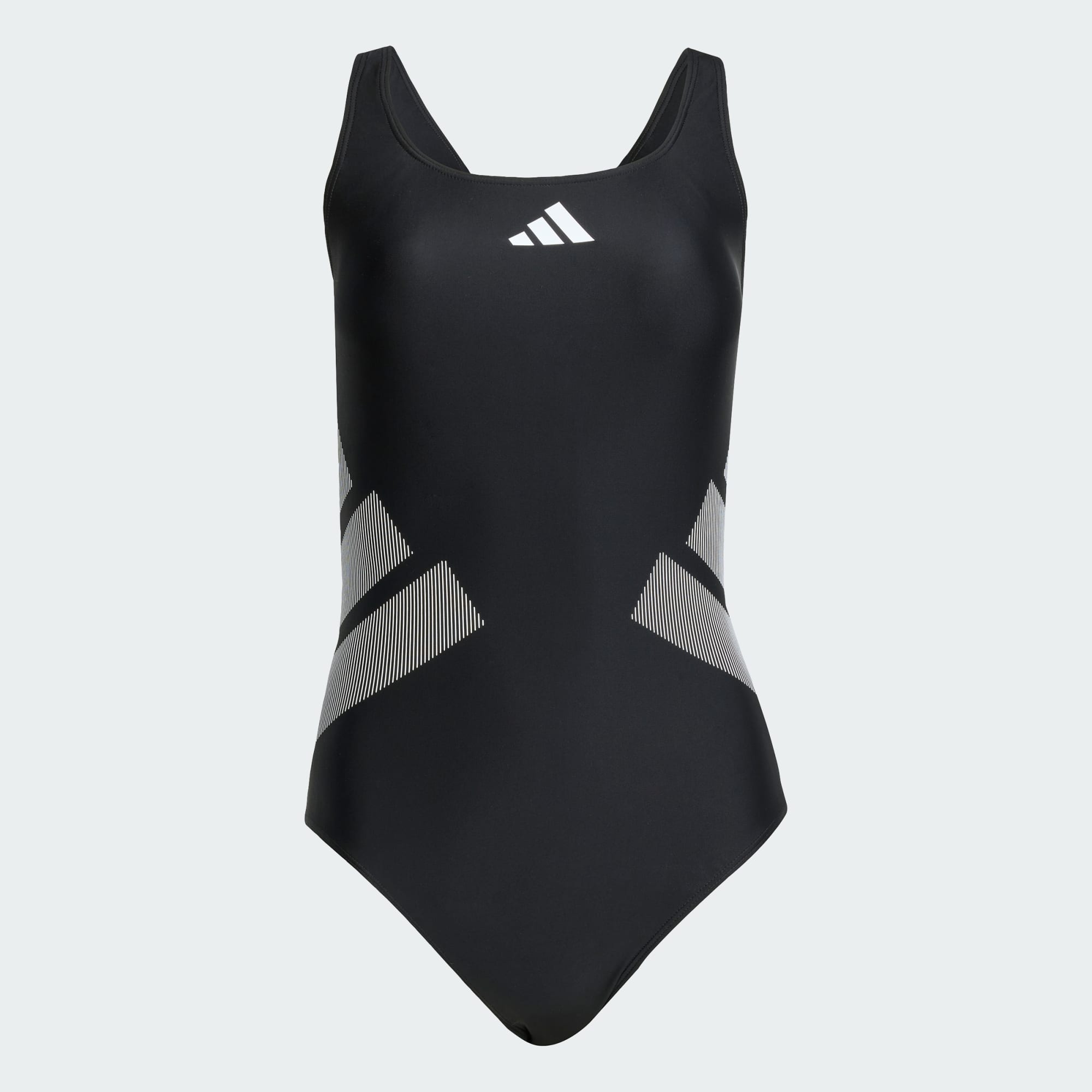 Gør indtryk i denne adidas-badedragt. Det bløde, hurtigtørrende trikotstof og den moderate dækning giver en behagelig, sikker pasform til lange dage ved poolen. De dristige, oversize 3 Bar-logoer giver den et sporty look.