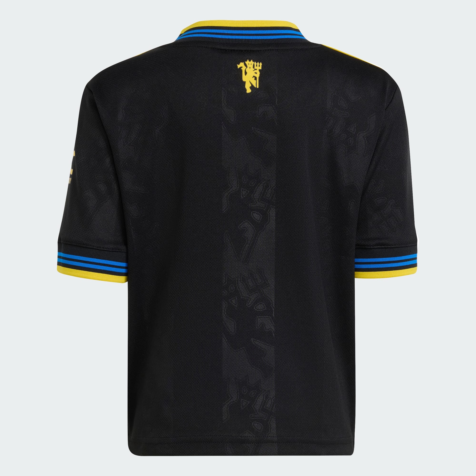 Dette er en version i børnestørrelse af det klassisk-inspirerede adidas-sæt, som Man Utd bruger på udebane. Dette sæt med replikatrøje og shorts er færdigt i sort og indeholder gule Trefoils og klubmærker, mens mere diskrete detaljer er vævet ind i materialet. Fugtighedsregulerende AEROREADY holder dig tør og selvsikker, når du begiver dig ud på et livslangt fodboldsjov.