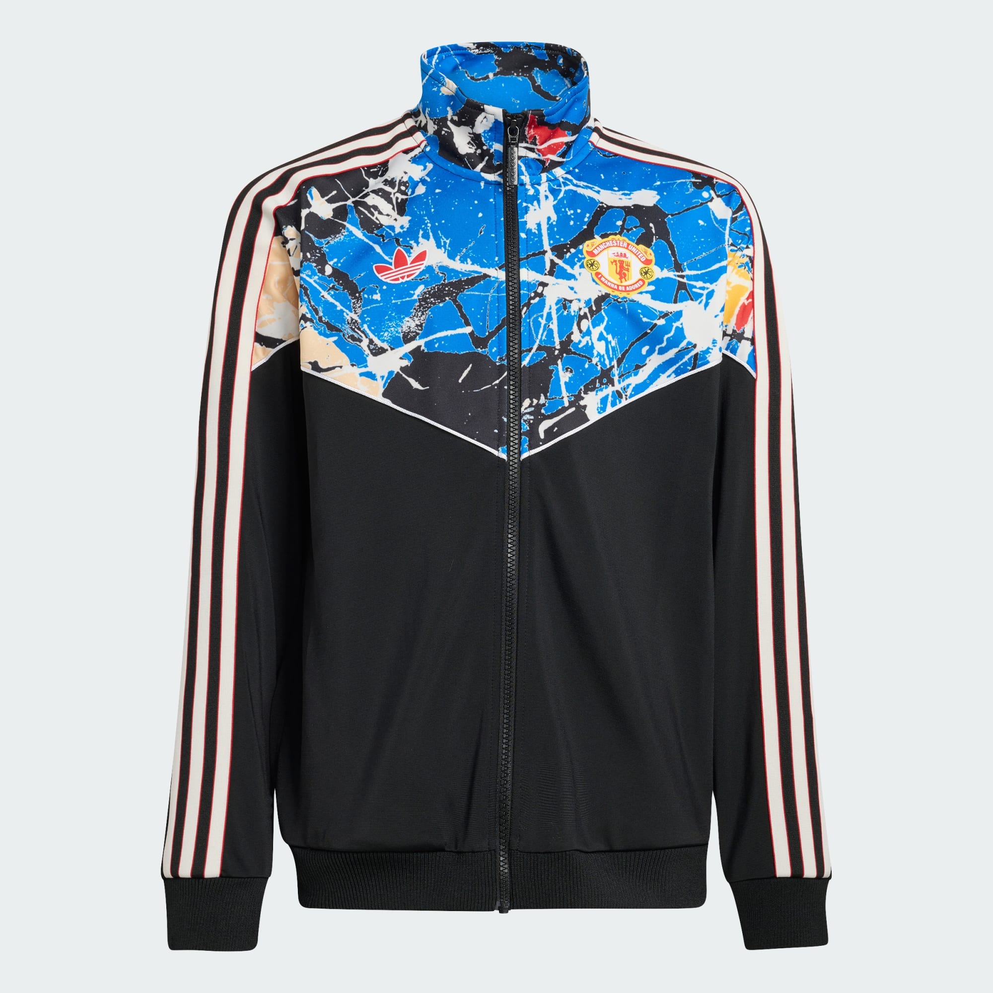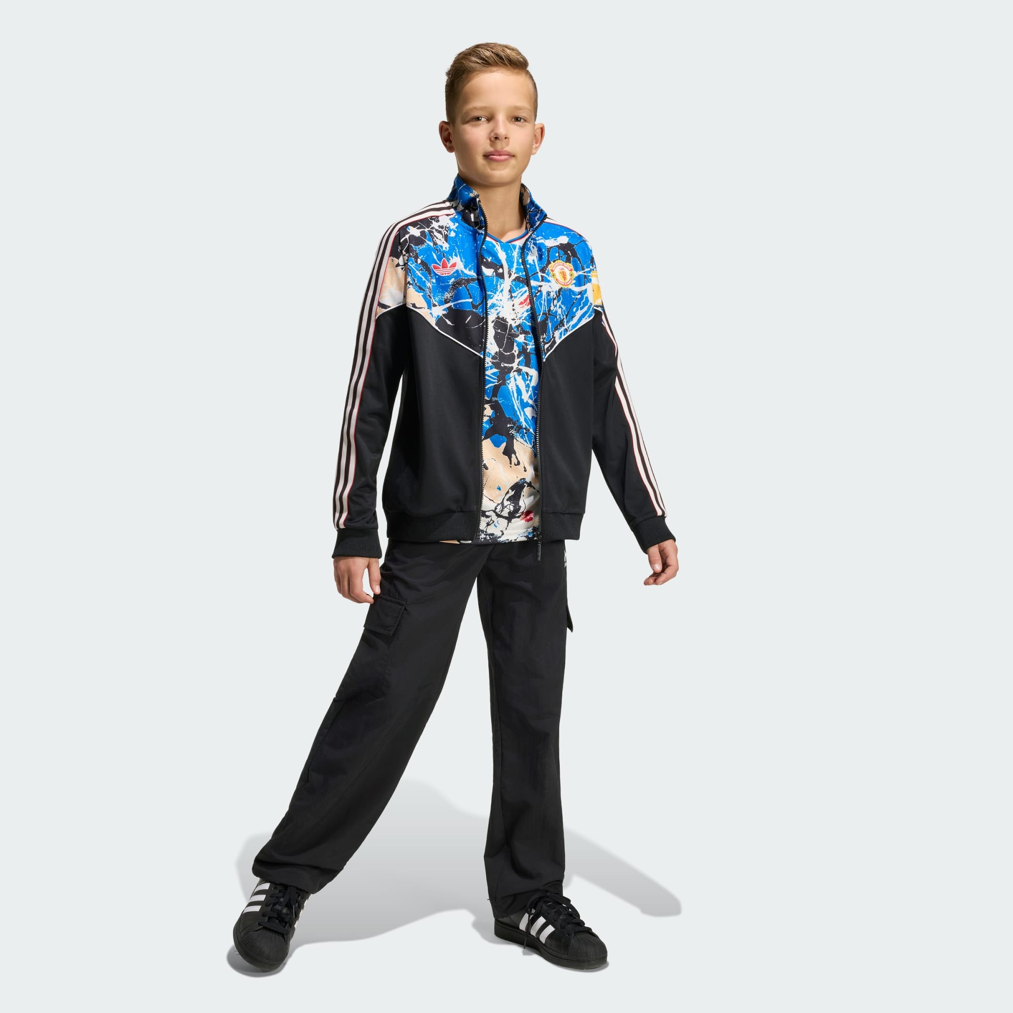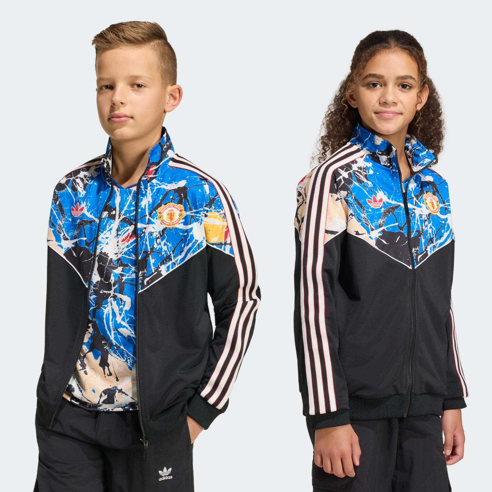 Manchester United Stone Roses-træningsoverdel blander fodboldens pulserende ånd med den dristige energi fra ikonisk musik. Uanset om de hepper på deres hold eller nyder en dag ude med vennerne, lader denne træningsoverdel dem udtrykke deres legende ånd og deres kærlighed til spillet. Den normale pasform tilbyder en afslappet, men strømlinet silhuet for behagelig bevægelse og nem lag-på-lag-funktion, mens det dynamiske print repræsenterer en rig arv af musik og sport. Lynlåslukningen tilføjer praktisk alsidighed, mens det strikkede stof giver et blødt touch for en behagelig følelse på travle dage. Uanset om de er i skole, på legepladsen eller støtter deres yndlingshold, lader denne træningsoverdel dem gøre det i komfort og stil. Tag den over dit yndlingssportstøj eller hverdagstøj, og træd ud med selvtillid med adidas.