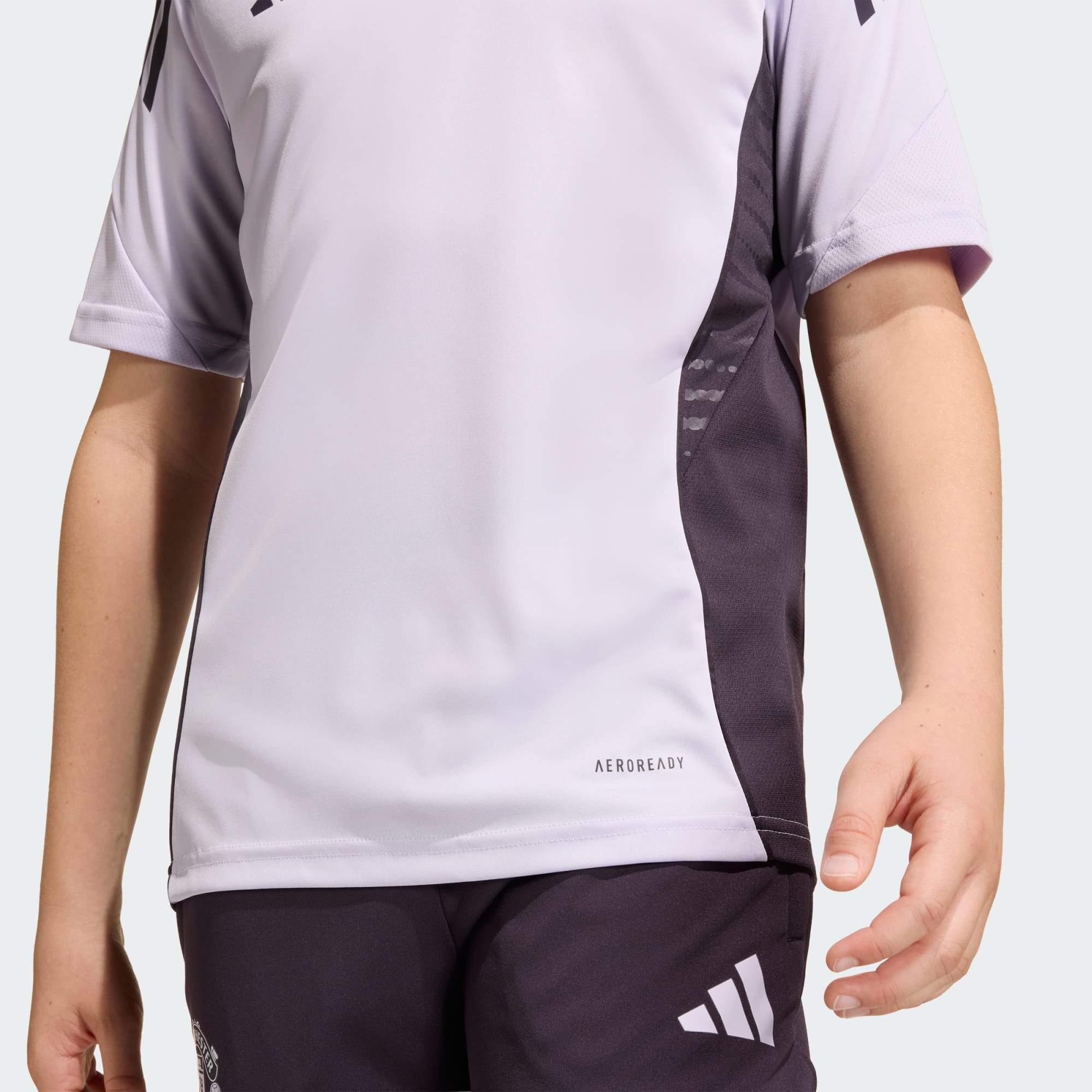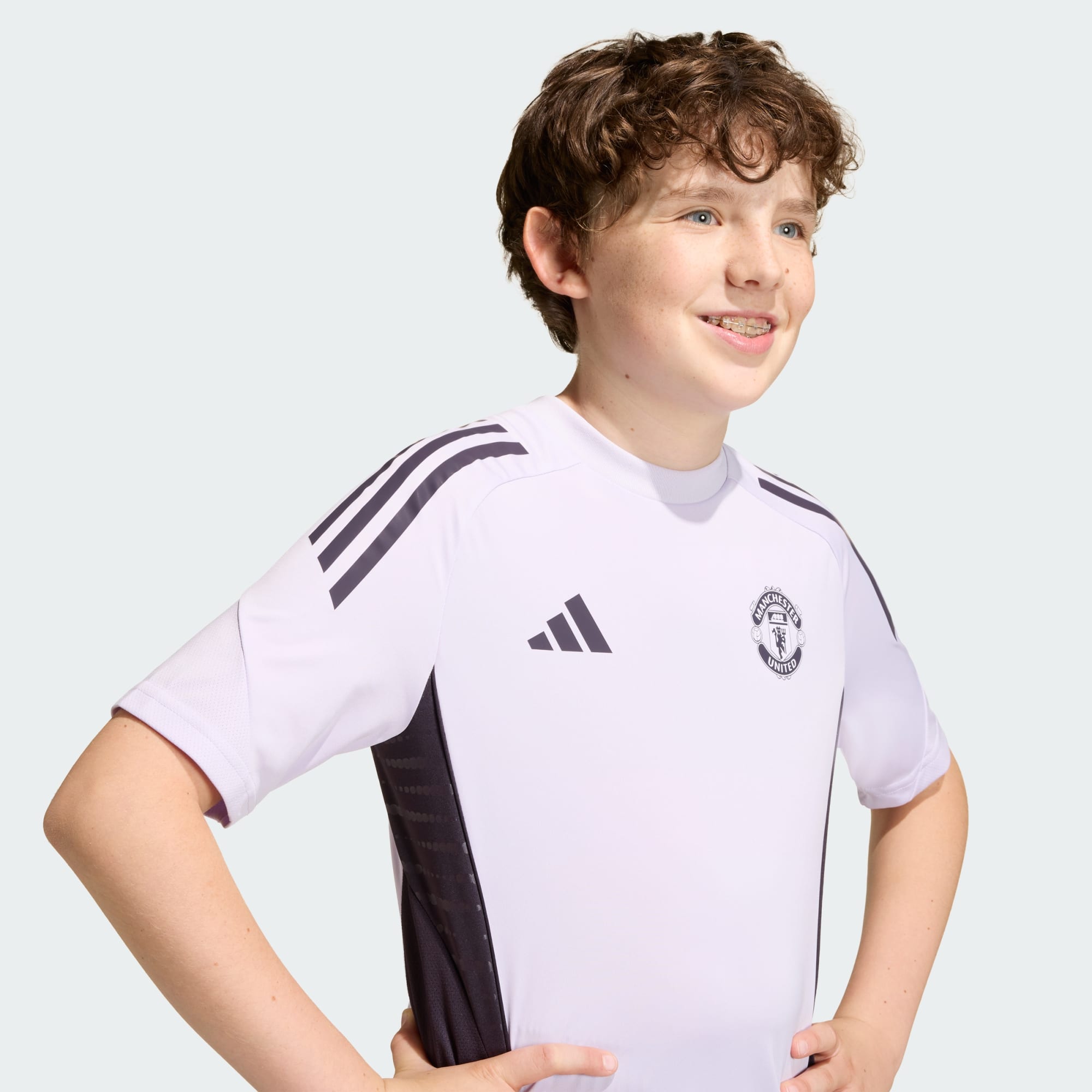 Denne træningstrøje i juniorstørrelse fra adidas har farver inspireret af Manchester Uniteds udebanetrøje og er en del af det sæt, spillerne bærer, når de gør sig klar til ligakampe. Det bløde interlock-stof og fugthåndterende AEROREADY kombineres for at give et behageligt spil. Et varmetrykt klubmærke giver fodboldinspiration og holder vægten nede.