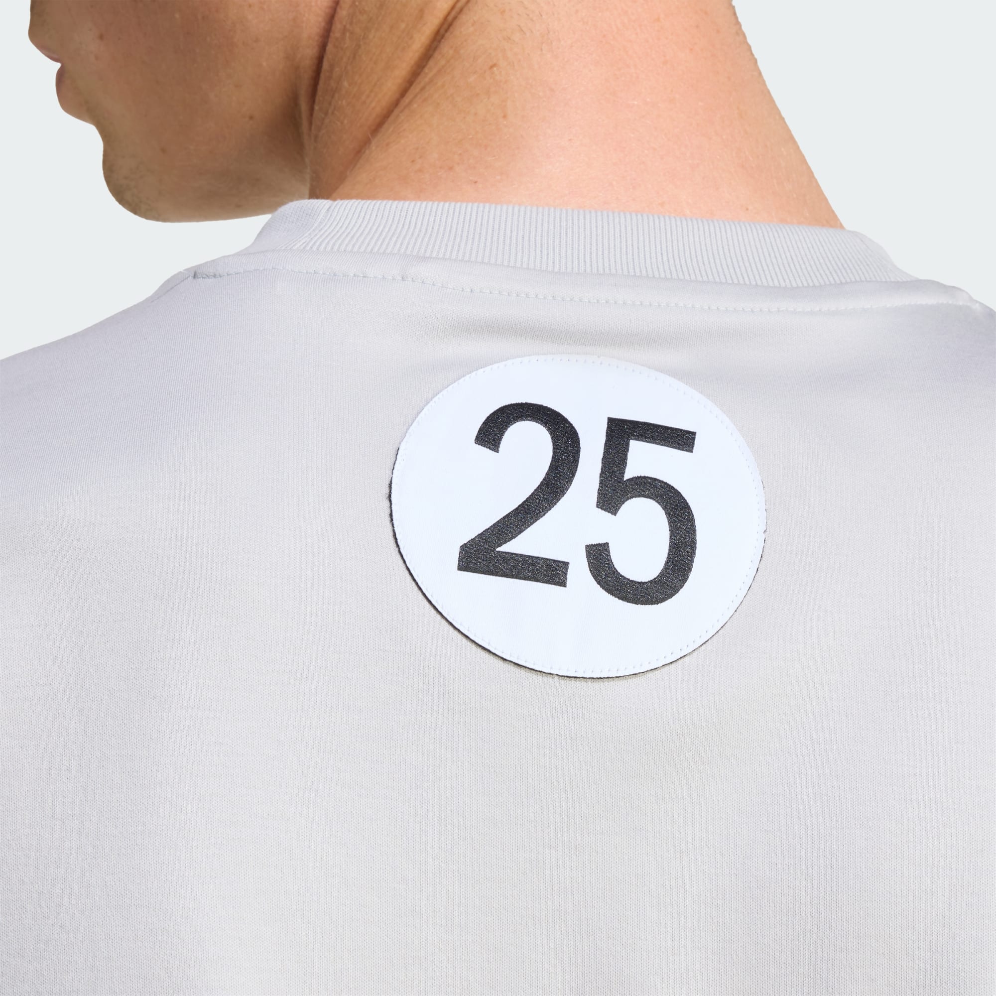 The image shows a close-up view of a gray and black athletic jacket or garment, with the Mercedes-Benz logo prominently displayed on the front.