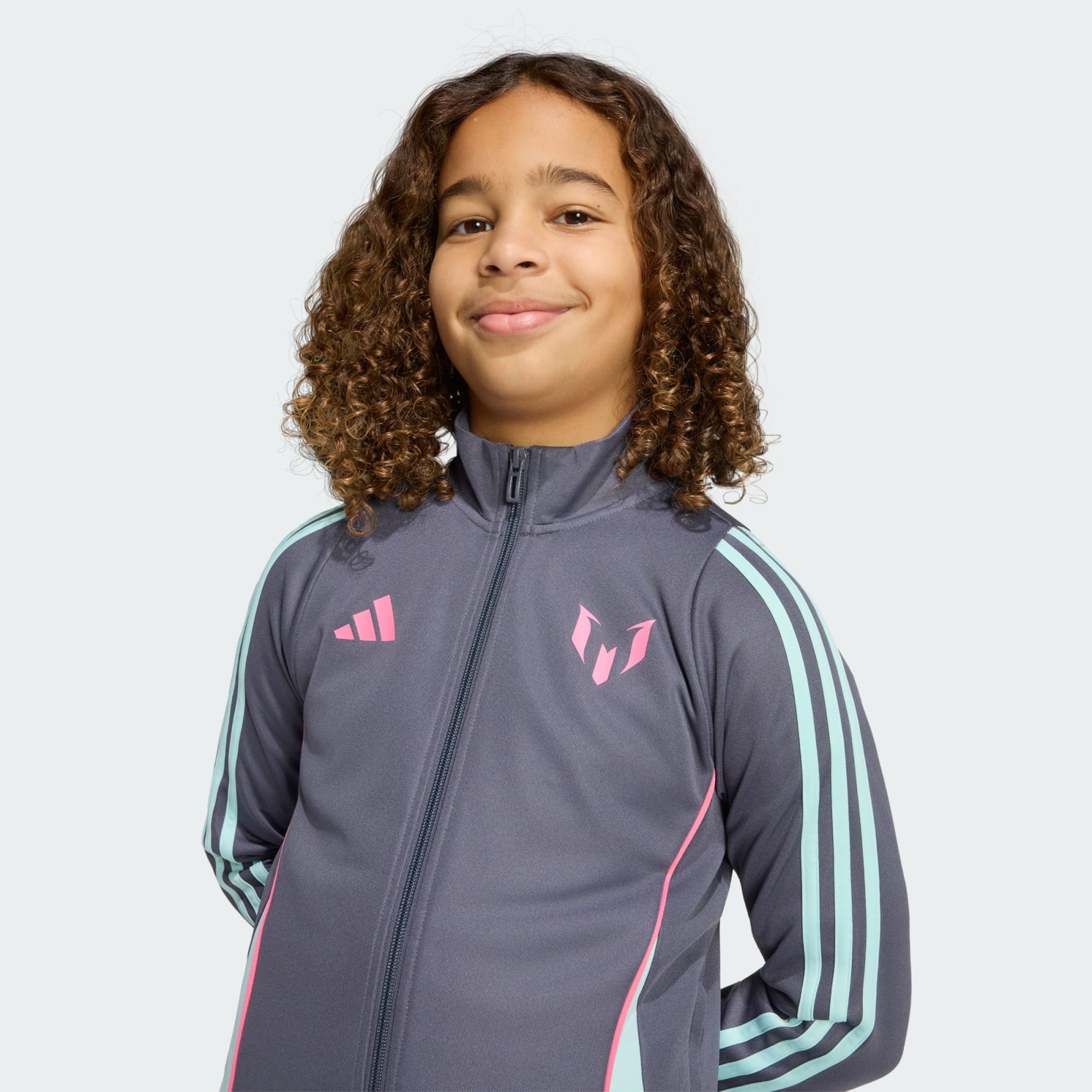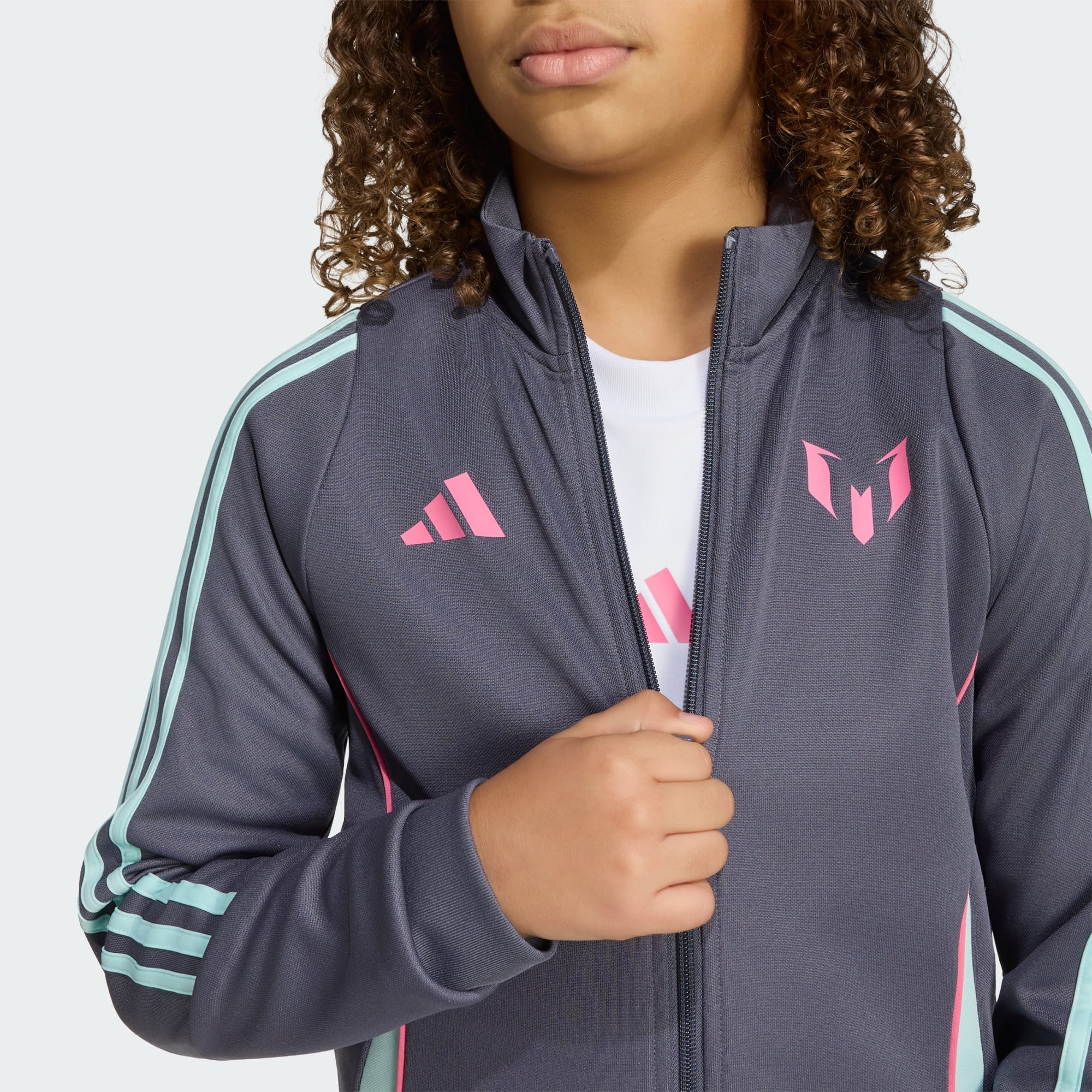 Denne Messi-jakke i juniorstørrelse fra adidas er skabt til fodboldspillere med store ambitioner og dominerer på og uden for banen. Tag den på for at repræsentere The GOAT, når du er ude med dine venner. Lyn den op, når du har brug for et ekstralag til træning. Uanset hvor du er, hjælper det fugthåndterende AEROREADY med at holde dig tør og godt tilpas.