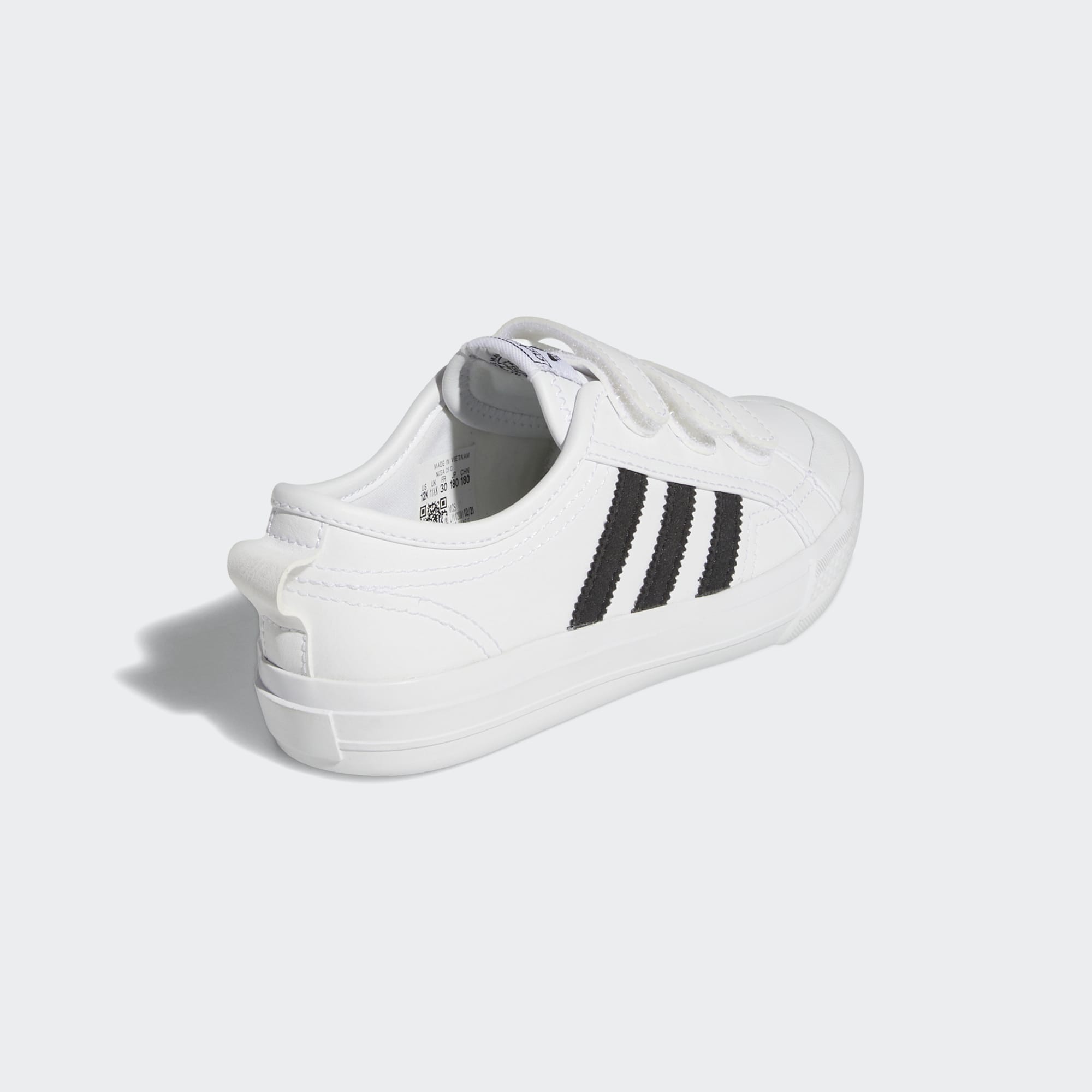 Klassisk adidas Nizza-stil til hverdagen. Disse børnesko er behagelige takket være den lette og stødabsorberende mellemsål. Velcroremmene gør det superlet at få dem af og på.