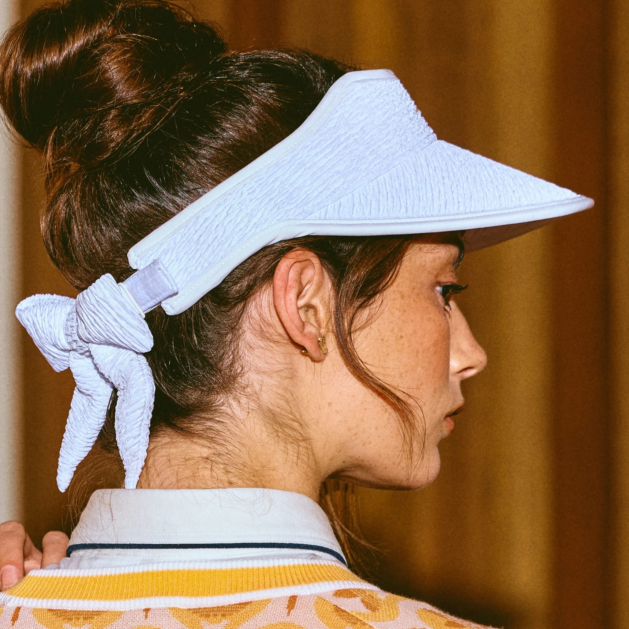 En solskærm til golf med klassisk sportsstil.
