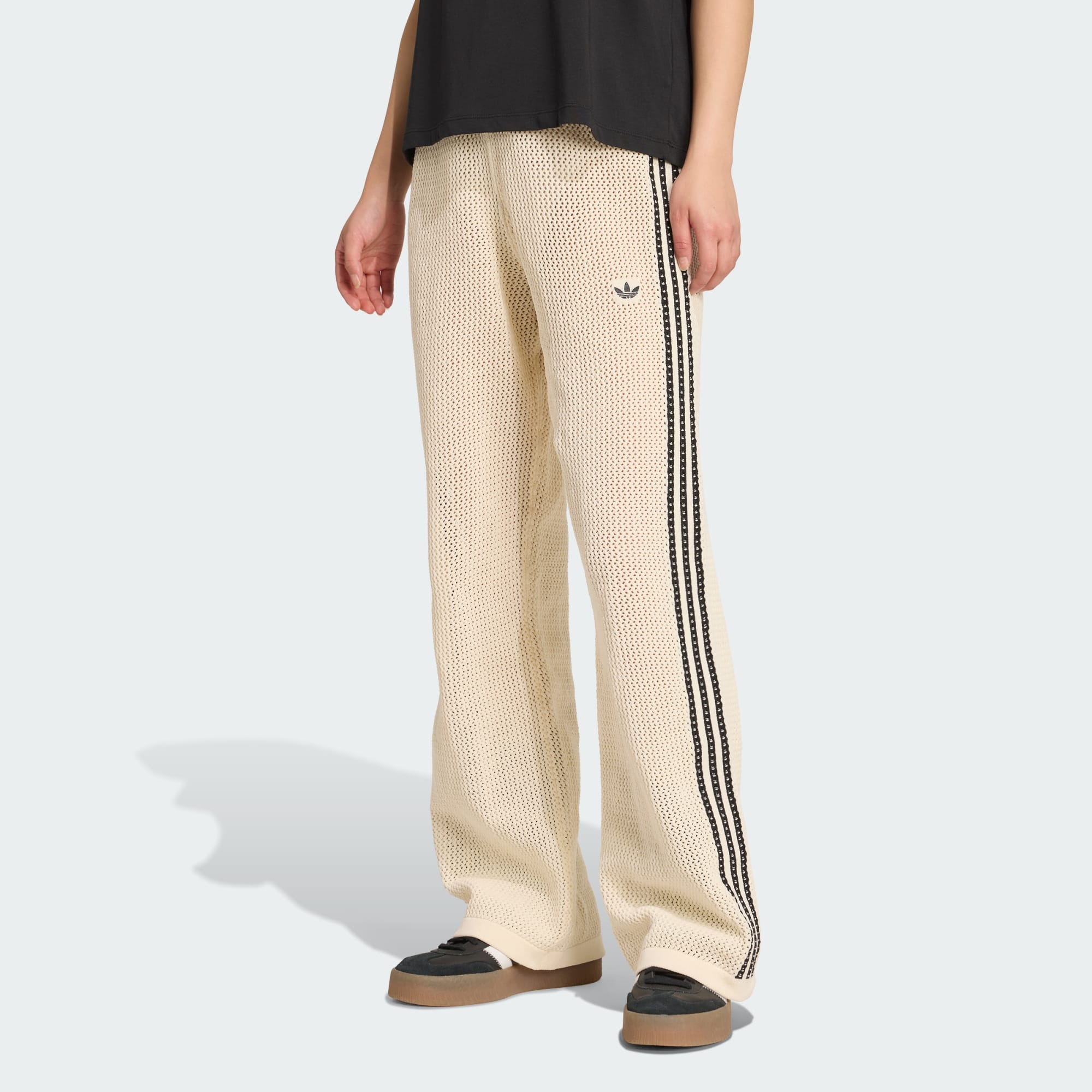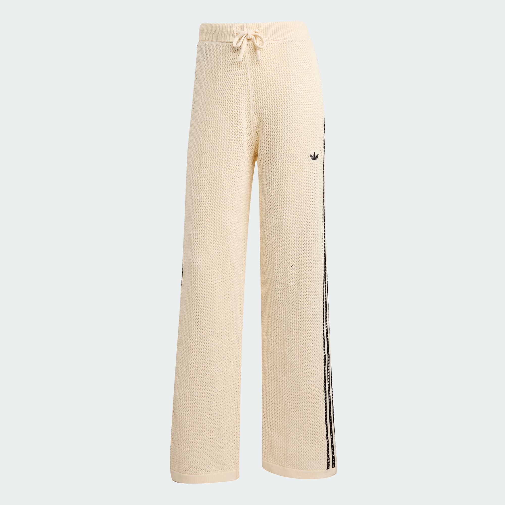 Disse træningsbukser sender en hilsen til adidas' sporty rødder og er lavet i eksklusivt hæklet stof, der er blødt og åndbart. Ribopslag giver dem en lettere tilspidset pasform, og 3-Stripes ned ad siderne genkalder arkivstilen. Sæt dem sammen med den matchende hæklede jakke for at få et sporty og smart look fra top til tå.