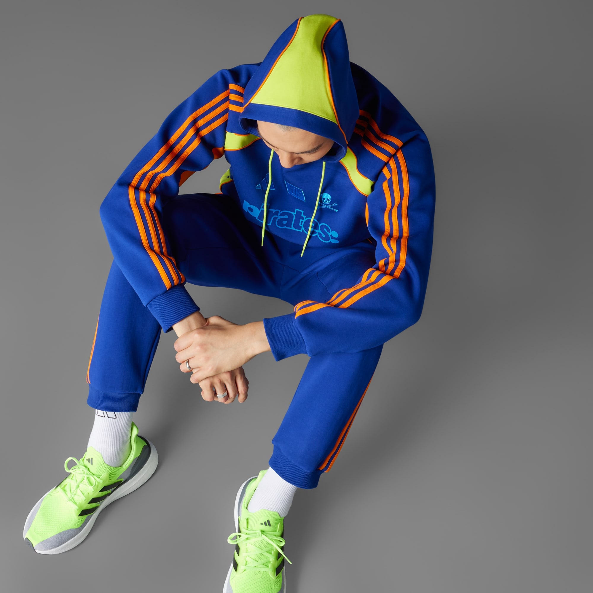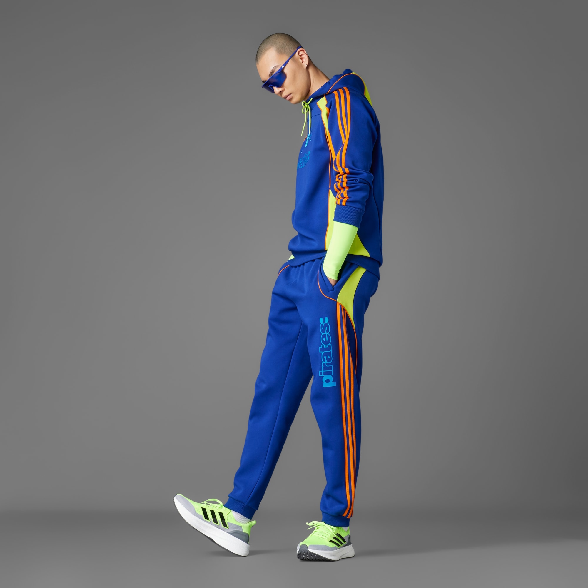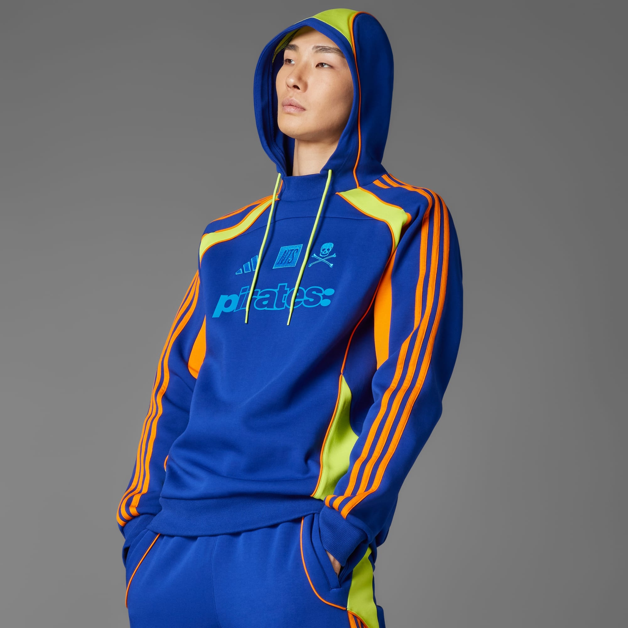 Find din fodboldstemme i en hoodie designet af adidas og NTS Radio. Denne farverige top er en del af en særlig kollektion, der hylder forbindelsen mellem musik og det smukke spil, og blander 2010'ernes fodboldstil med sydafrikanske amapiano-indflydelser for at repræsentere den ægte Orlando Pirates FC-lyd. Et holdmærke, NTS-logo og en stilfuld "Pirates"-grafik på brystet skaber et enestående look.