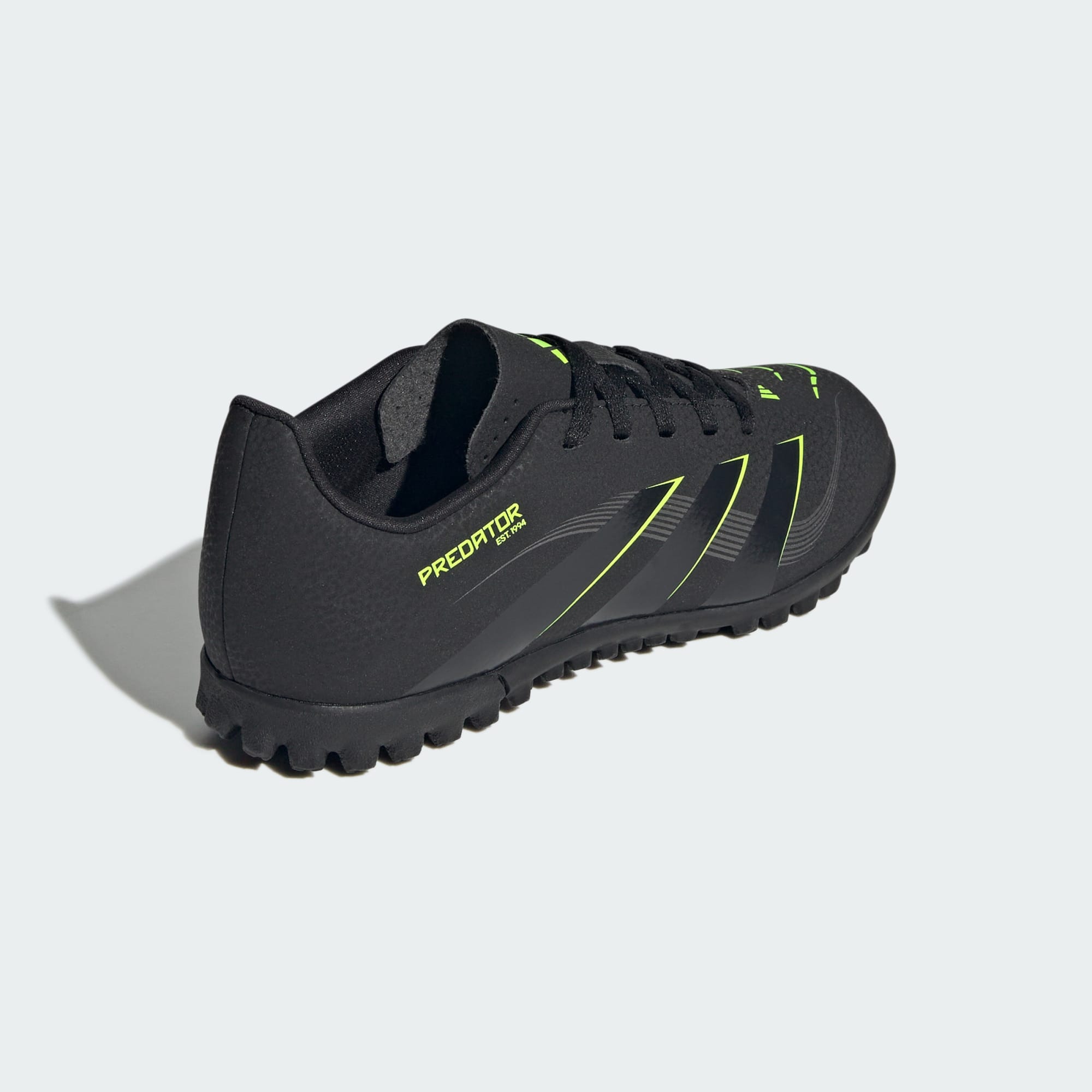 Opdag forskellen mellem at forsøge at score og at vide, at du scorer, med adidas Predator-støvler, der er skabt til at score mål. Disse Club-foldboldstøvler i juniorstørrelse har en syntetisk overdel med skridsikker Strikeprint-struktur, der giver bedre boldkontrol. Den rillede ydersål i gummi er designet til at give dig de bedste skydepositioner på kunstgræsbaner.